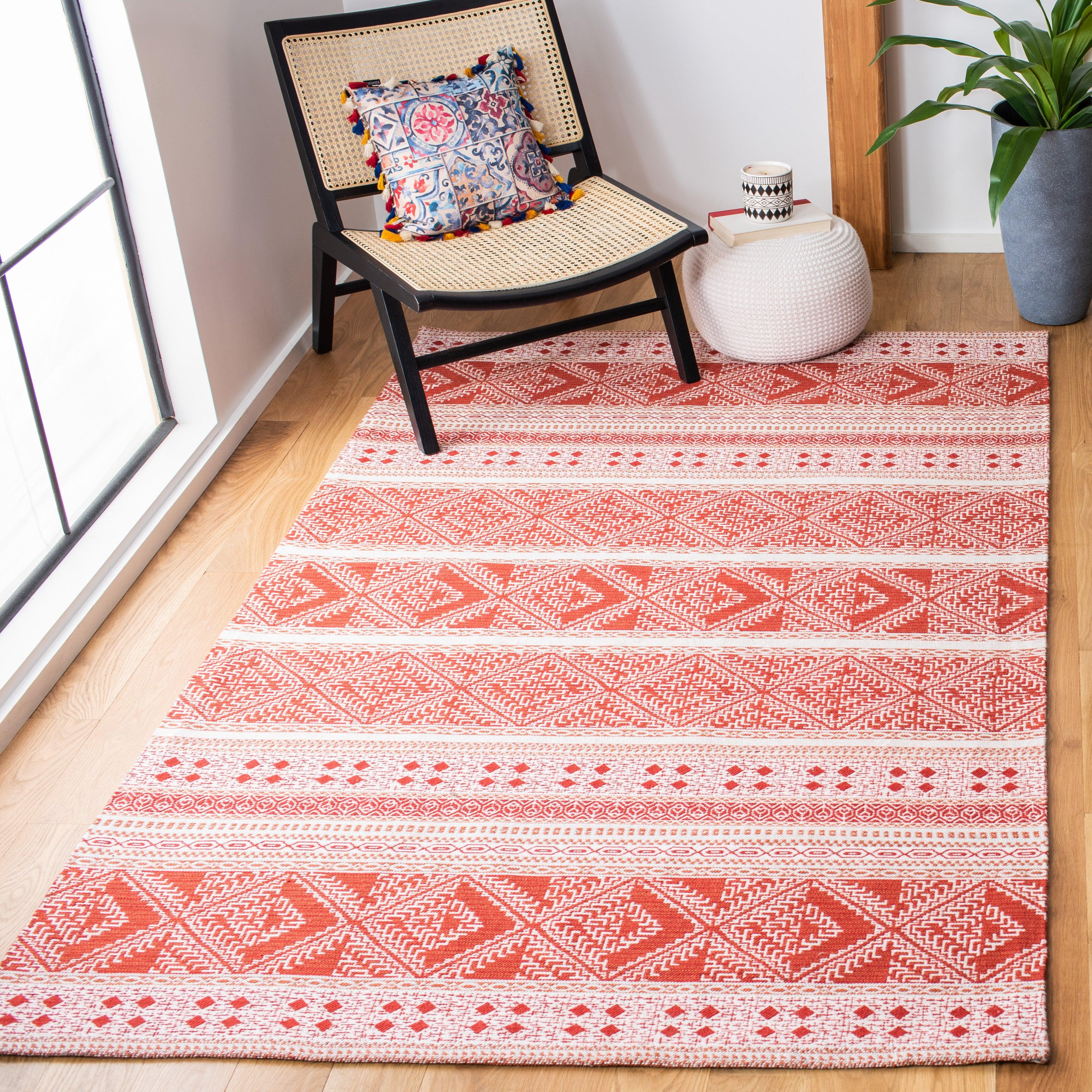 Classic Vintage CLV717P from SAFAVIEH's renowned Classic Vintage Collection. These urban-mod, antique-finish flat weave area rugs seamlessly blend traditional rug artistry with contemporary decor trends. Crafted from 100% pure cotton, the distressed-look colors and classic motifs add a touch of vintage charm to any space. With an approximate thickness of 0.35 inches, this rug is perfect for adding both classic elegance and trendy colors to modern or transitional home furnishings.