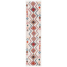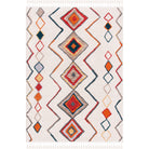 Farmhouse FMH599A rug, perfect for creating a stylish modern farmhouse look with a touch of bohemian inspiration. Featuring braided tassels on each end and hues of blue, orange, yellow, and red reminiscent of traditional southwestern colors, this rug effortlessly enhances any space. Its super smooth polyester pile adds comfort and style, making it ideal for layering over a natural fiber rug or placing directly under furniture in the living room, bedroom, or dining room. The rug boasts an approximate thickness of 0.25 inches.