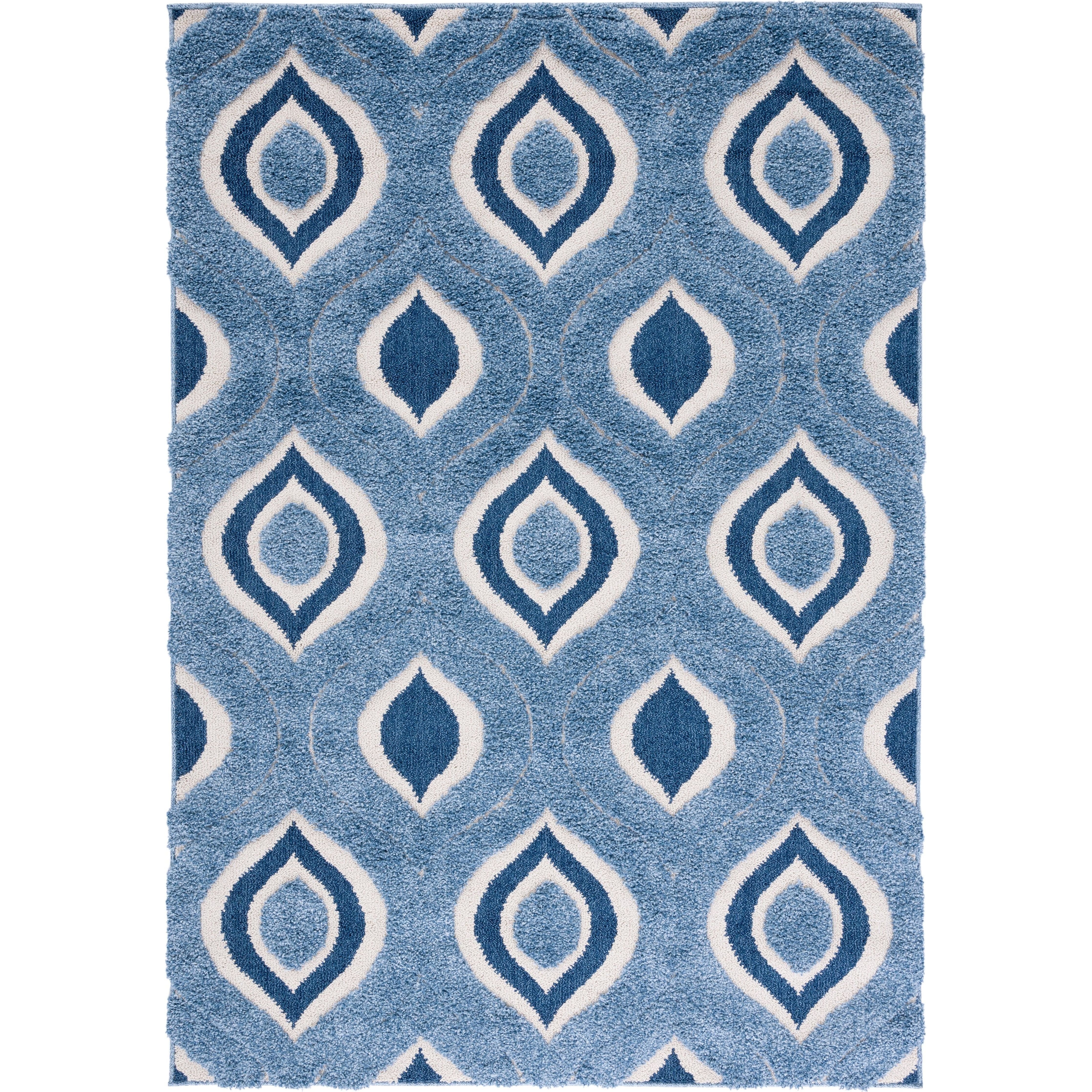 Florida Shag SG461 6012 rug, inspired by the vibrant Miami art scene for a stylish addition to your home décor. Featuring a captivating geometric pattern with concentric hourglass designs, this plush shag rug effortlessly blends '70s era charm with modern and transitional interiors. Crafted using machine-woven cut and looped synthetic yarns, it offers a luxurious texture and flowing dimension. With an approximate thickness of 1.2 inches, this rug adds both comfort and style to any room.
