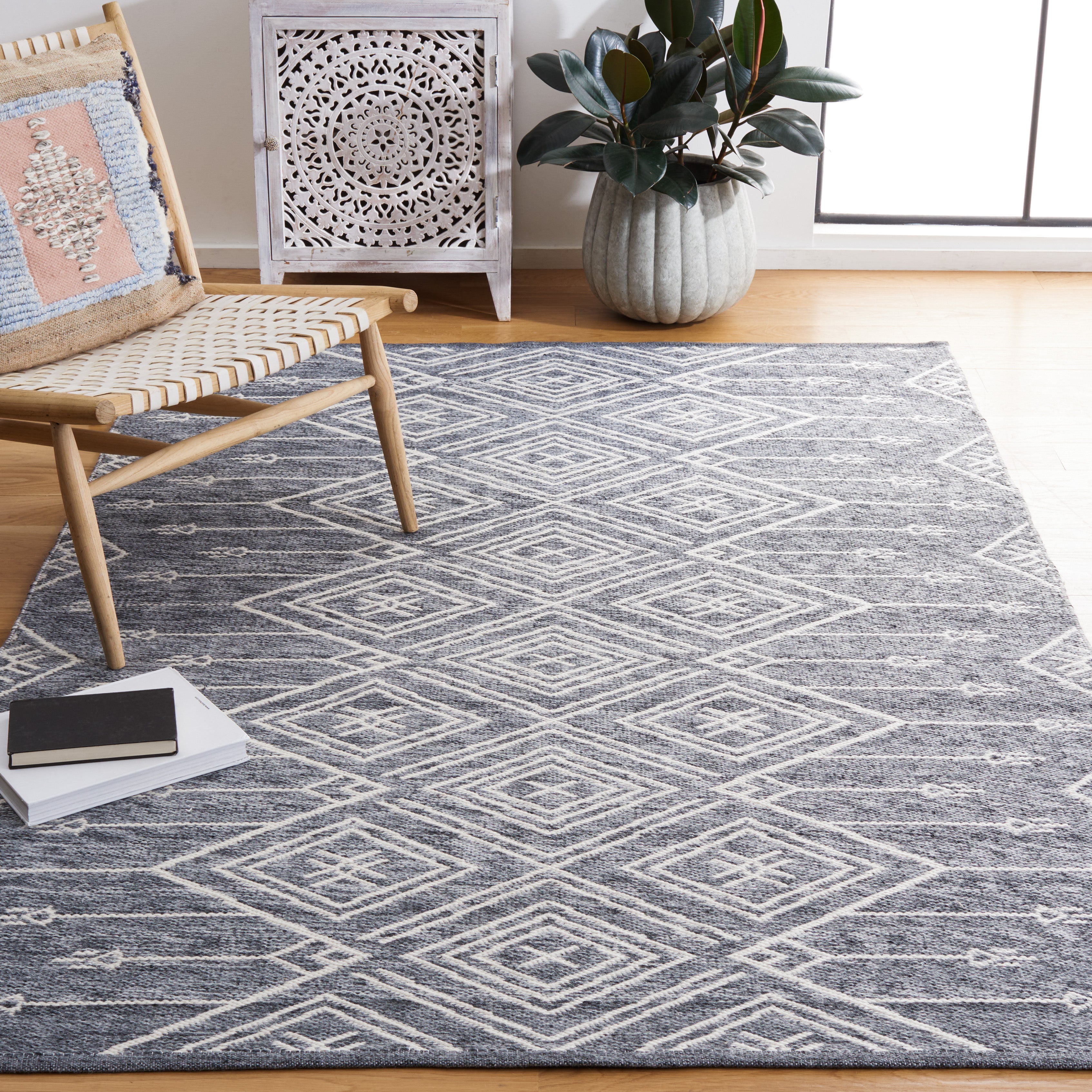 Kilim KLM301F by SAFAVIEH, a stunning bohemian flat weave area rug that effortlessly combines artistry and tradition. Handmade with care, these Kilim rugs showcase the rich heritage of nomadic cultures from the Middle East to Central Asia. The intricate tribal-inspired designs and vibrant colors of the Kilim collection bring a captivating touch to any room decor, creating a truly unique and inviting atmosphere.