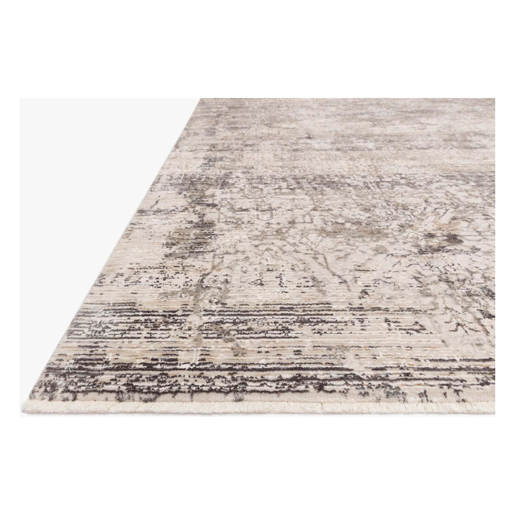 Homage Hom 01 Graphite Beige, a captivating addition to any space. Drawing inspiration from classic designs, the Homage Collection features a distressed pattern that exudes timeless charm. Crafted in Turkey using a blend of polyester and viscose, this neutral floor piece showcases a subtle high-low texture that feels luxuriously silky underfoot.