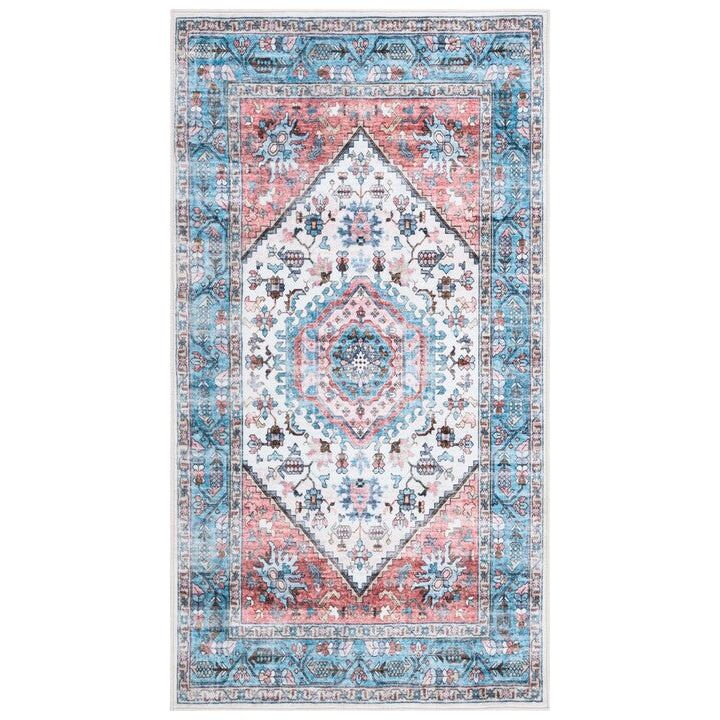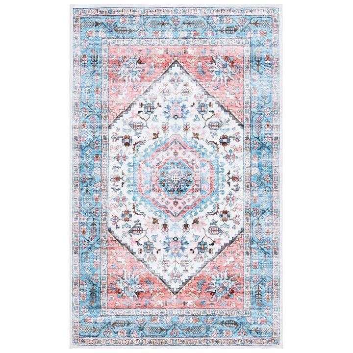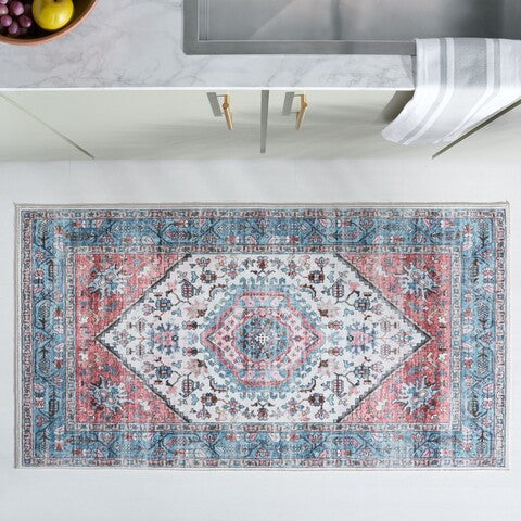 Washable Printed Rug WPR322K Turquoise / Red