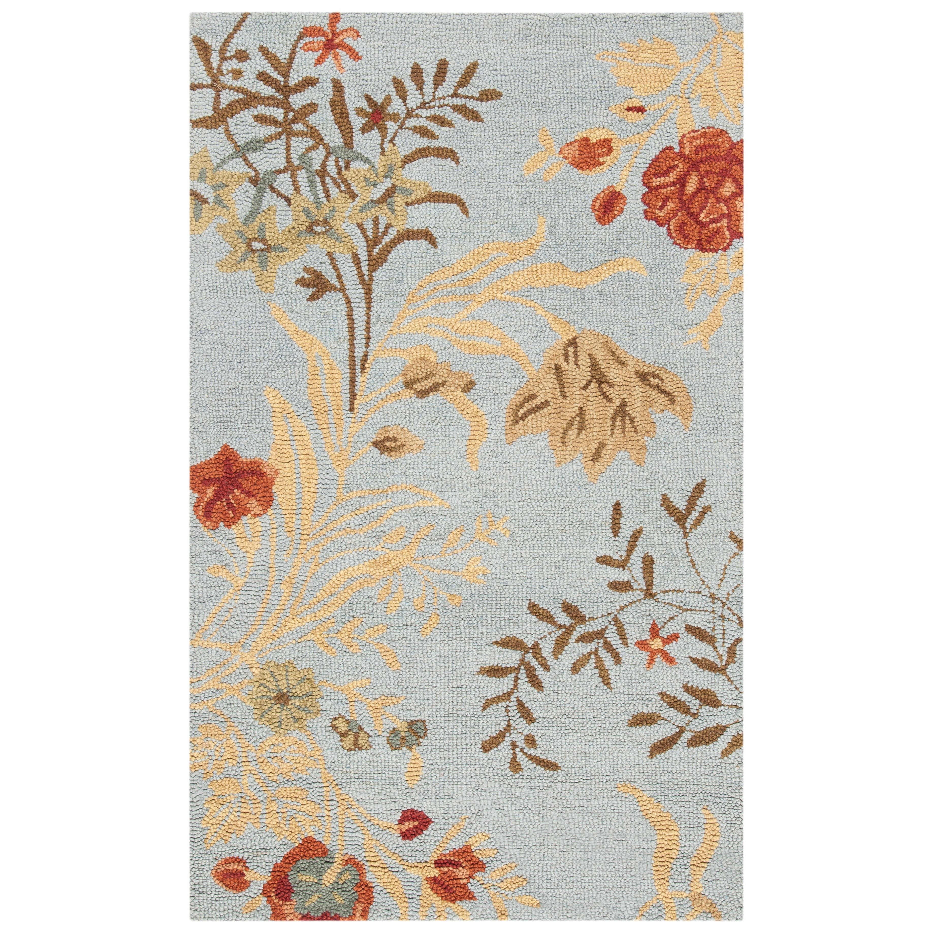 enchanting Blossom BLM919B, a luxurious addition to your home decor. Crafted with care from 100% pure virgin wool pile, this exquisite rug features intricate floral designs in soothing neutral tones. Each piece in this collection is meticulously hand-hooked by skilled artisans in India, ensuring top-notch quality and attention to detail. Elevate your living space with the timeless elegance and charm of the Blossom BLM919B rug, exclusively brought to you by Safavieh.
