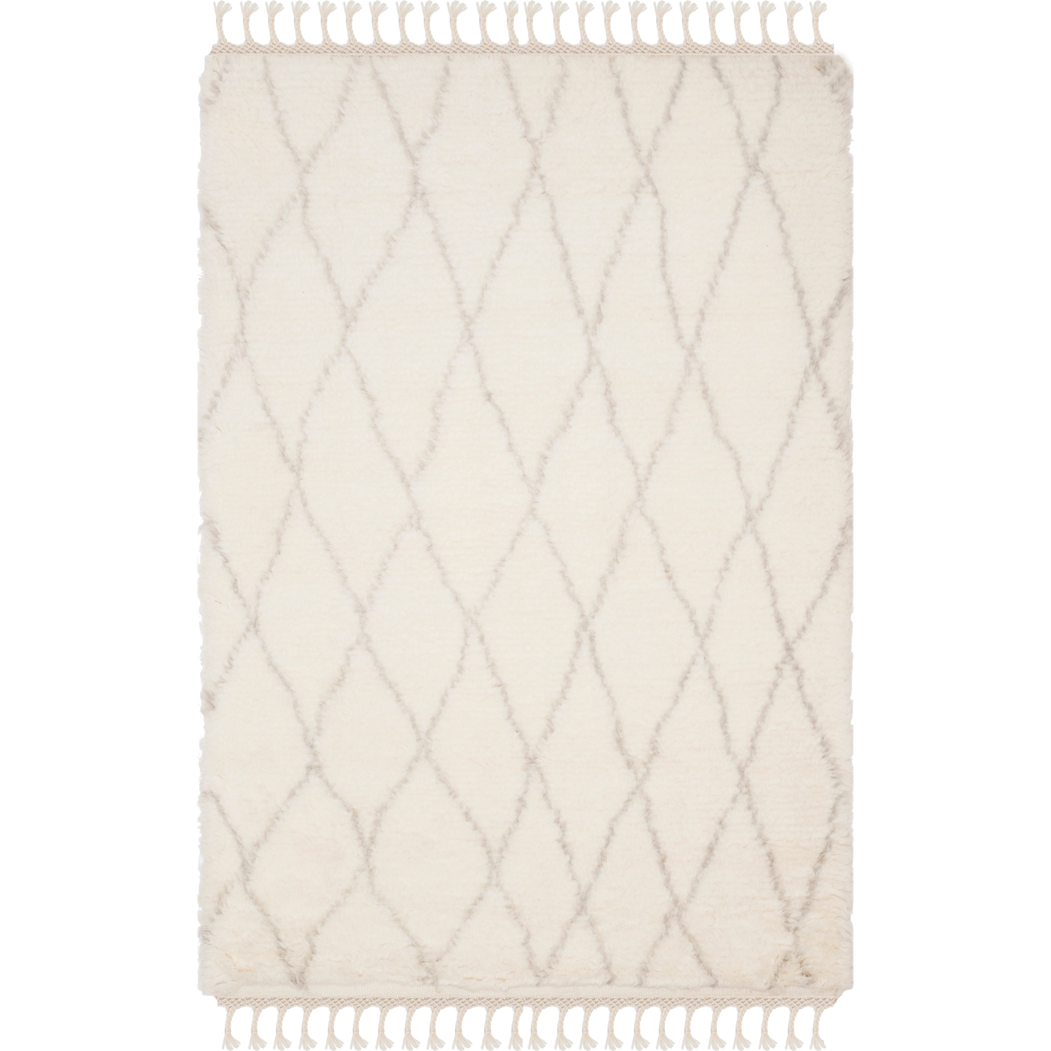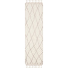 Casablanca CSB145A rug from Safavieh's Casablanca Collection, inspired by the minimalistic designs of Moroccan Beni Ourain rugs. This rug features a timeless mosaic pattern of navy and ivory geometrics, set against a washed blue shag pile for a soft and rustic touch that complements modern interiors. Hand-tufted with premium New Zealand wool, it offers the luxurious feel of a classic Middle Eastern Flokati-style rug.