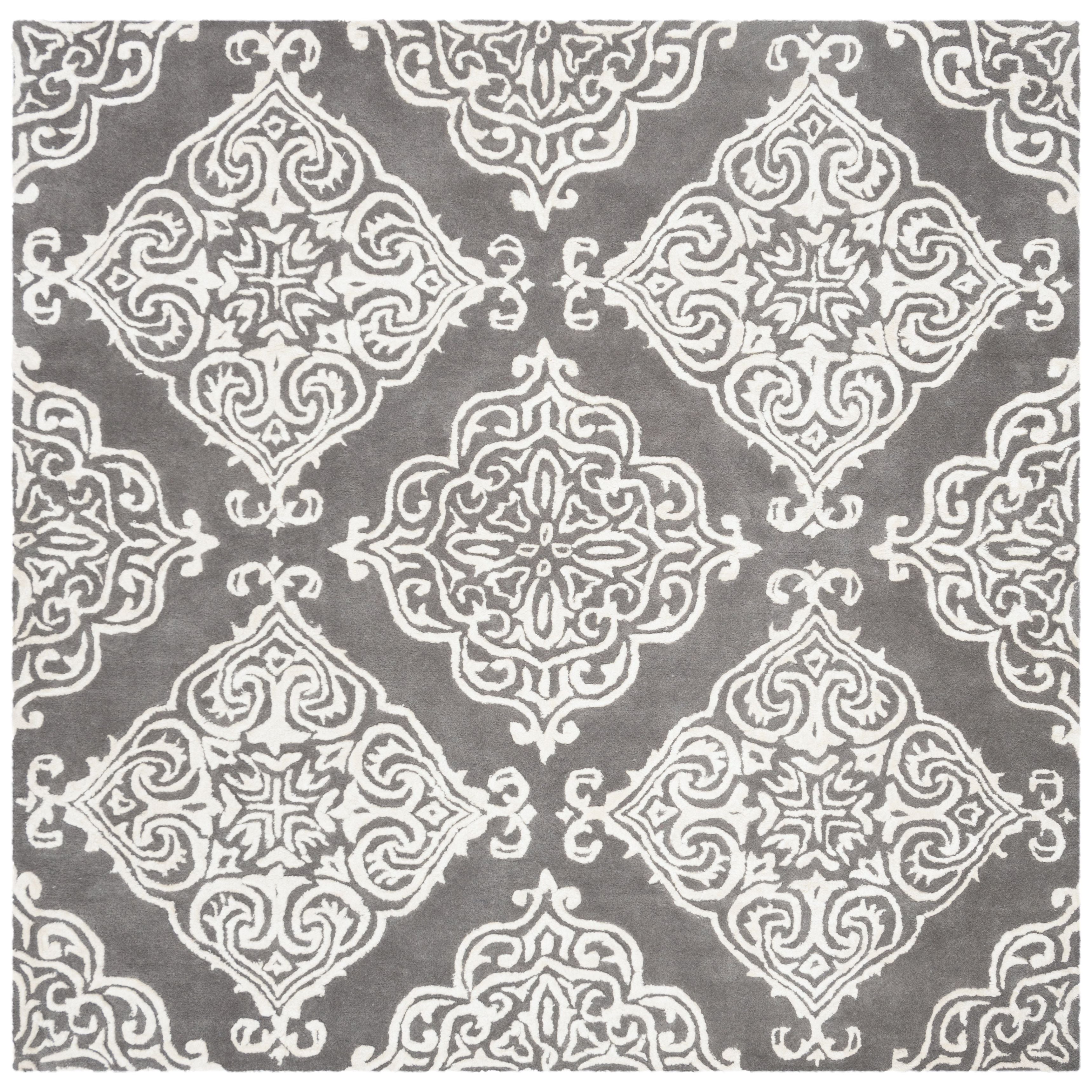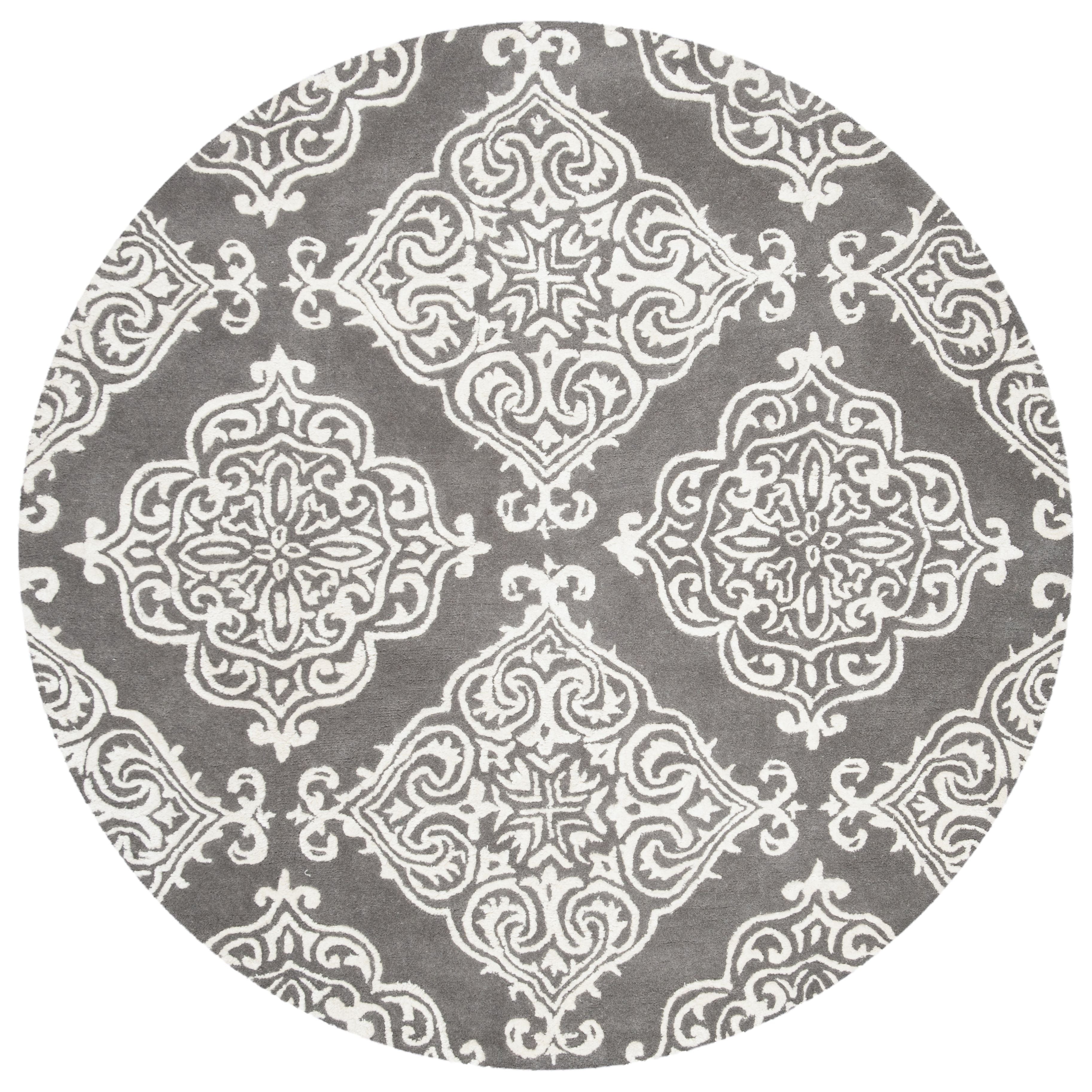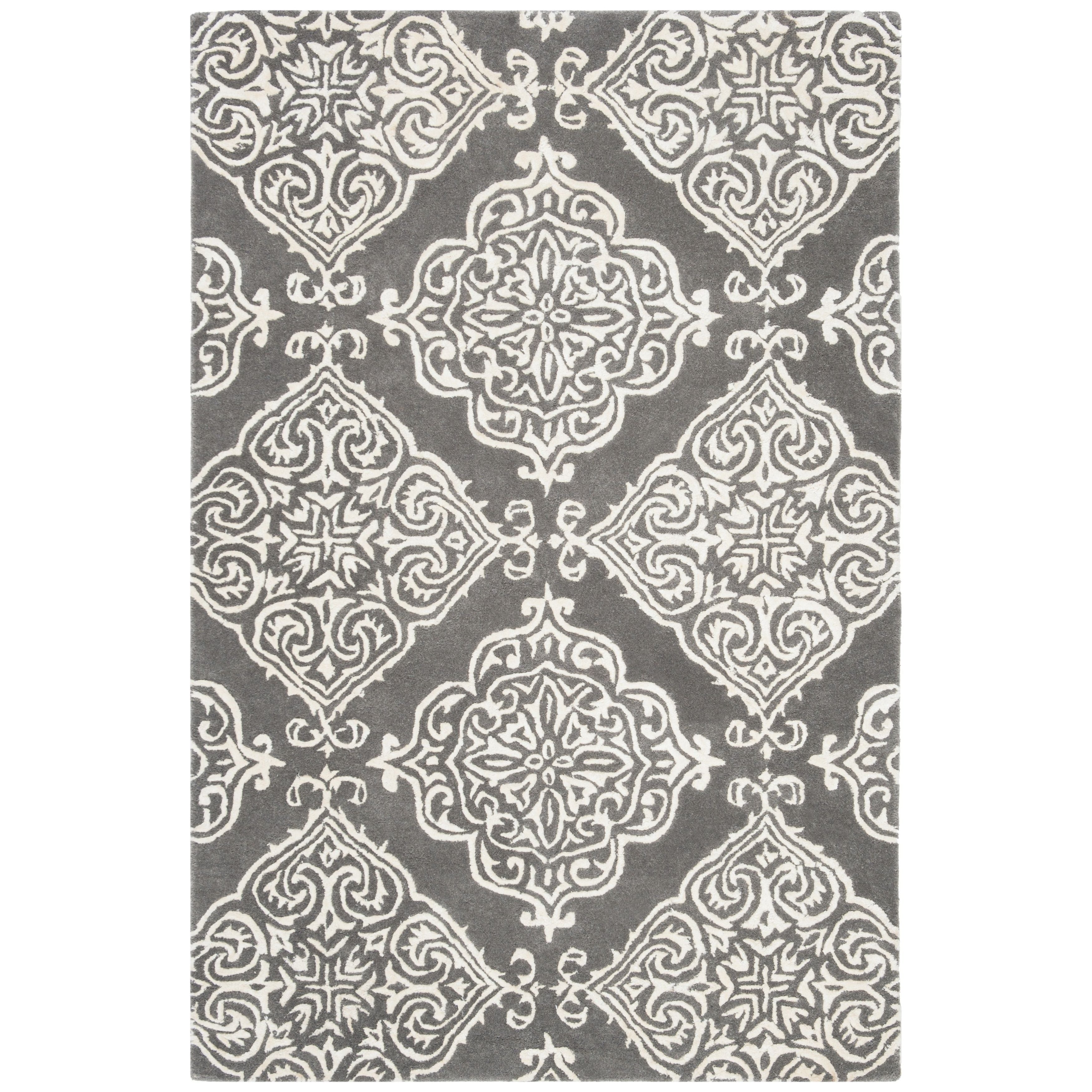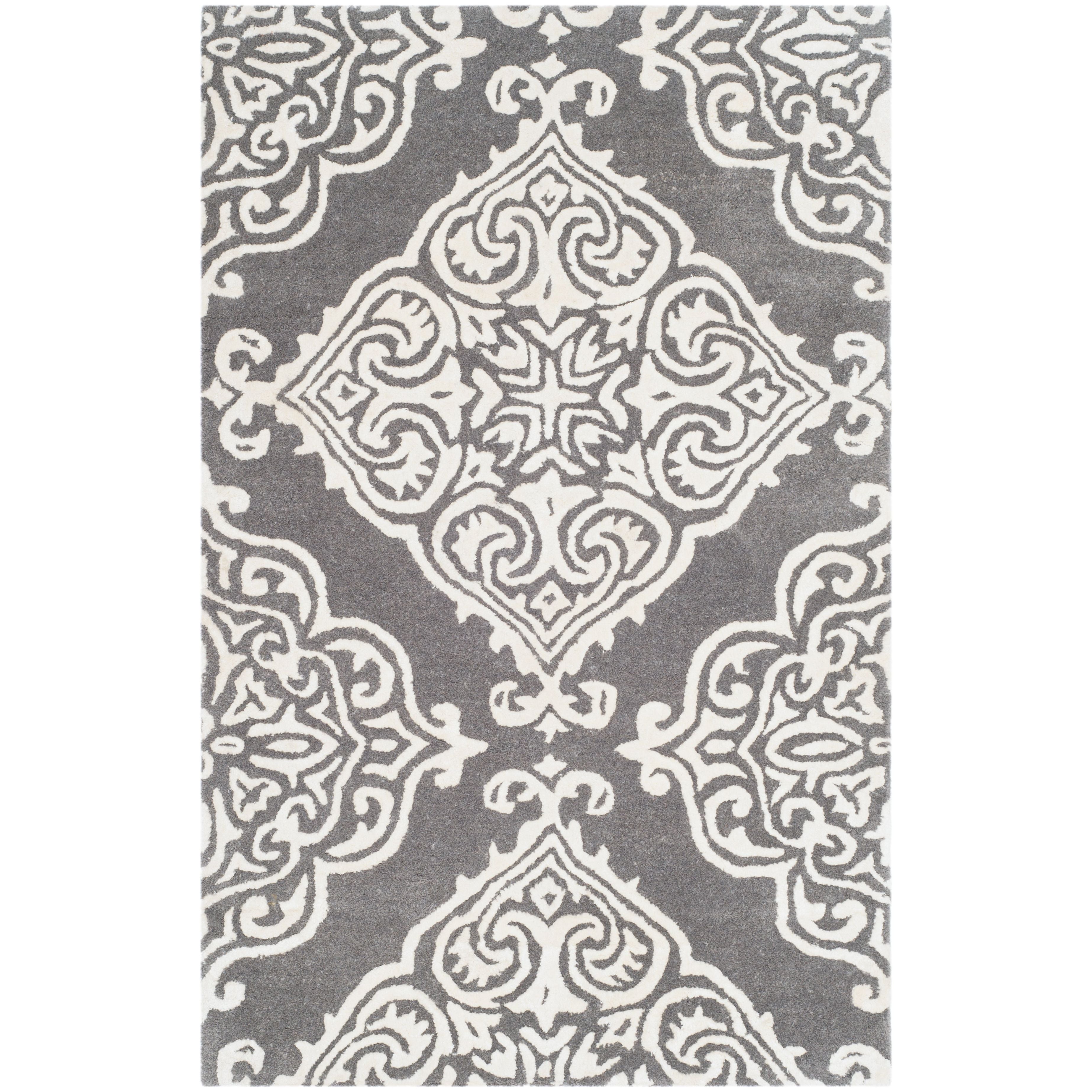 Elevate your home decor with the Glamour GLM568D Dark Grey Ivory area rug from the Glamour Collection. Hand-tufted with 100% pure wool, this rug showcases traditional designs on a soft, medium cut pile, adding elegance to any room. Perfect for the living room, family room, or master suite, this rug boasts a thickness of approximately 0.5 inches.