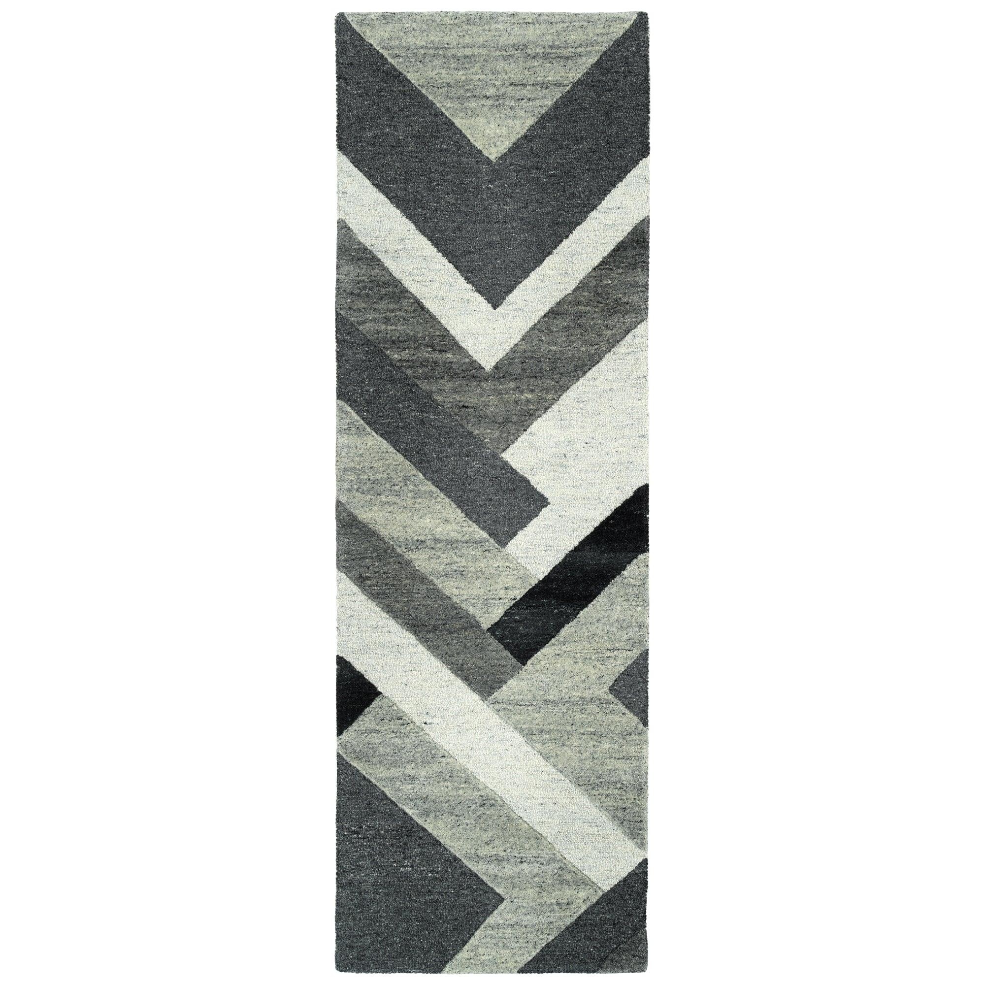Alzada ALZ03 38 Charcoal, a stunning addition to the Alzada Collection. Crafted with precision, this rug features an intricate design of verticals and lines that form captivating geometric shapes. Hand-tufted using 100% hand-spun wool, each of the six unique designs showcases a blend of naturally dyed yarns, resulting in rich and distinctive coloring.
