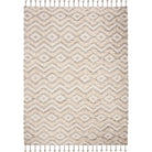 Kenya KNY605F Grey Ivory Rug, a stunning addition to any modern home decor. Handmade using pure wool, this rug collection features captivating designs, luxurious textures, and modish colors that will instantly elevate the aesthetic of your space. The Kenya rugs boast unique tribal patterns created with over-stitched cut pile yarns for added depth and character, with an approximate thickness of 1.5 inches.