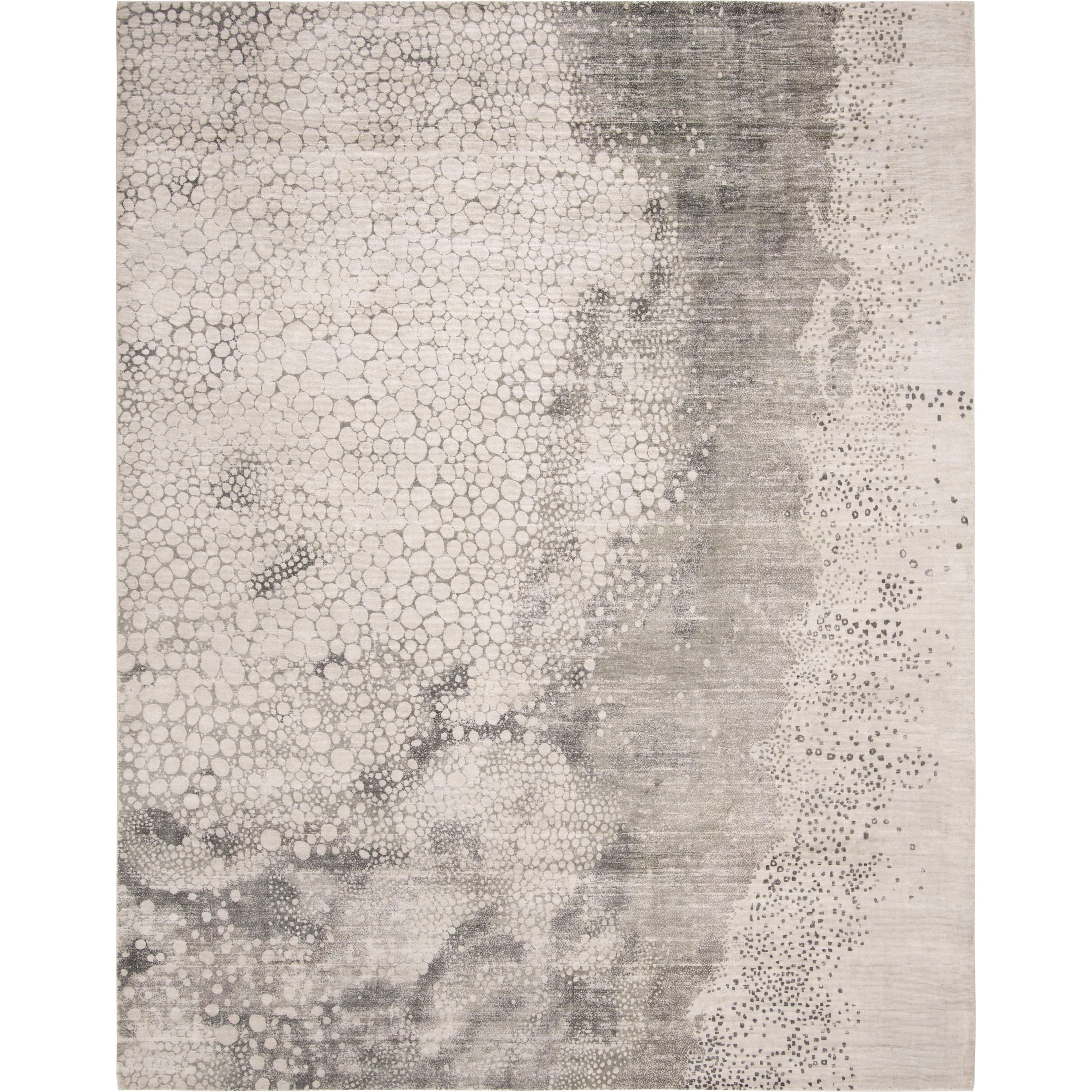 Mirage MIR977F Grey area rug from the Mirage Collection, designed to bring a touch of Hollywood glamour into your home. Crafted with organic viscose yarn that mimics the luxurious look and feel of silk, this rug features a sophisticated tone-on-tone pattern. Handmade by skilled artisans, it offers both beauty and practicality, measuring approximately 0.5 inches in thickness.