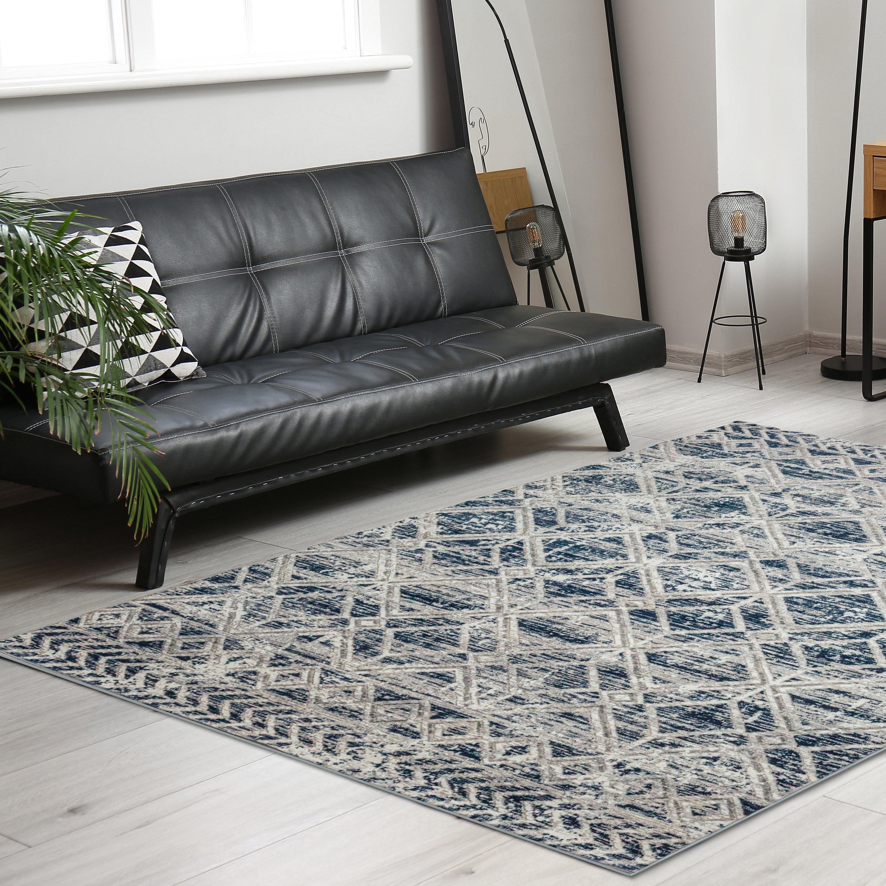 Livigno 1243 Blue area rug, a stunning addition to elevate your living space. This exquisite rug features an elegant transitional pattern that offers timeless appeal, effortlessly blending with various interior design styles. The densely woven pile ensures outstanding pattern clarity and design definition, while the geometric design adds a modern touch. Available in an array of colors including cream, beige, grey, green, and blue, these machine-made rugs are designed to suit any color scheme.