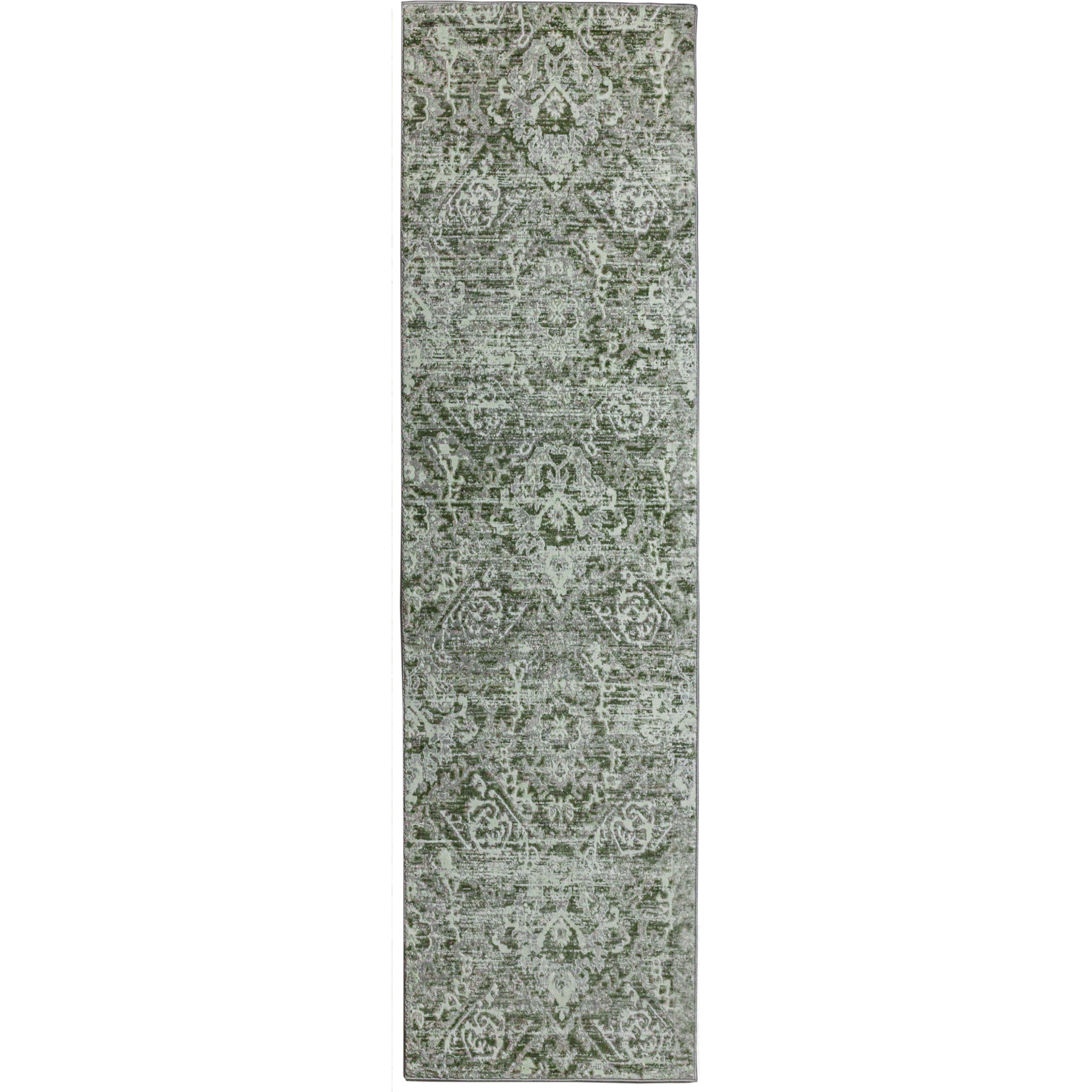 Livigno 1244 Green area rug, a stunning addition to elevate your living space effortlessly. This exquisite rug features an elegant transitional pattern that offers timeless appeal, seamlessly blending with various interior design styles. The densely woven pile ensures outstanding pattern clarity and design definition, showcasing a broken medallion design in a range of beautiful colors including cream, beige, grey, green, and blue. The neutral hues incorporated in the rug's design effortlessly complement any existing color scheme, creating a captivating visual effect that adds depth and texture to your home.