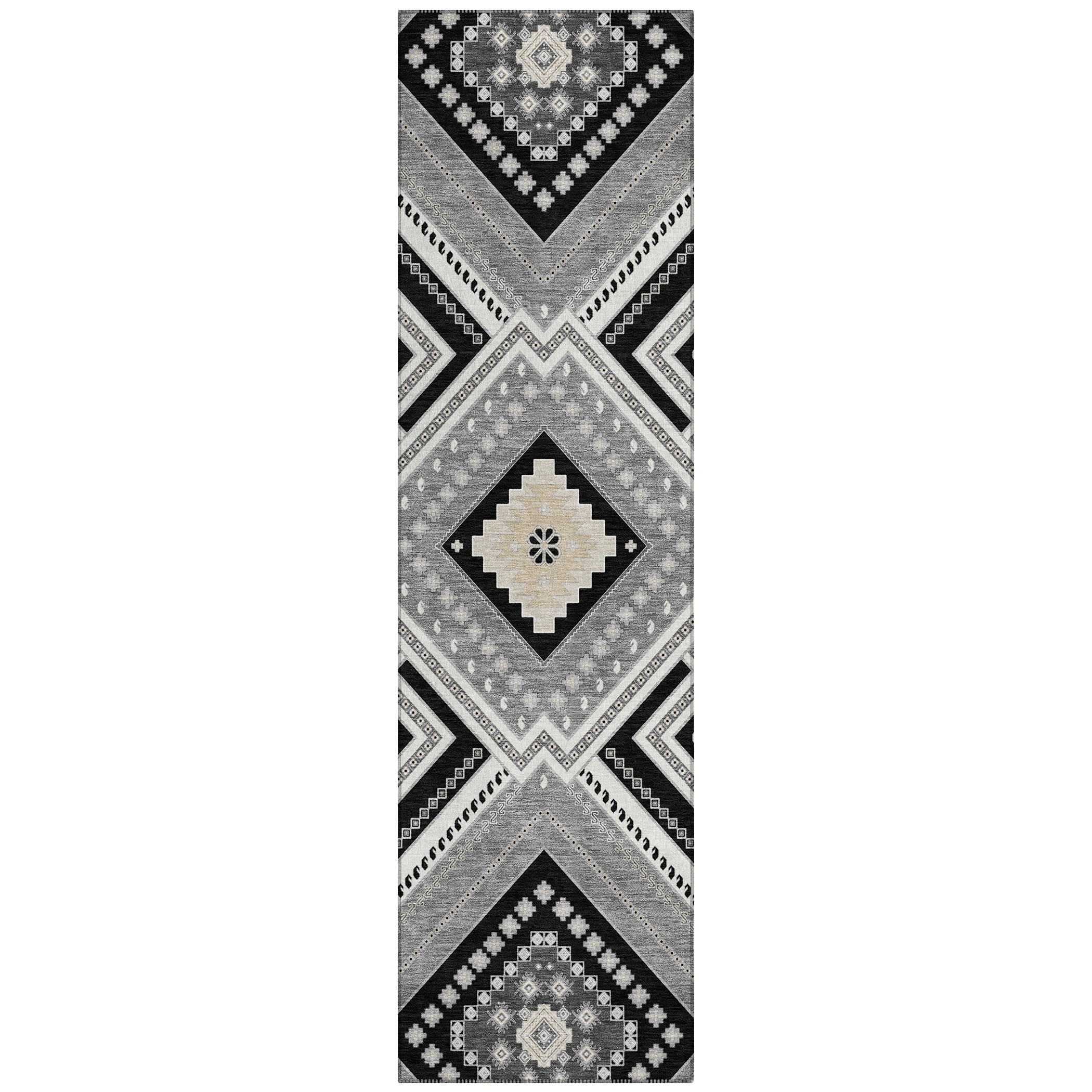 Our area rug brings a beautiful blend of tribal and ethnic elements, perfect for adding a Native touch to your transitional décor. Its intricate tribal patterns will serve as a stunning focal point in any setting. Additionally, the rug is UV stabilized to withstand the sun’s rays, crafted with an ultra-thin design for easy placement, and machine-washable for effortless upkeep in a busy, pet-friendly household.