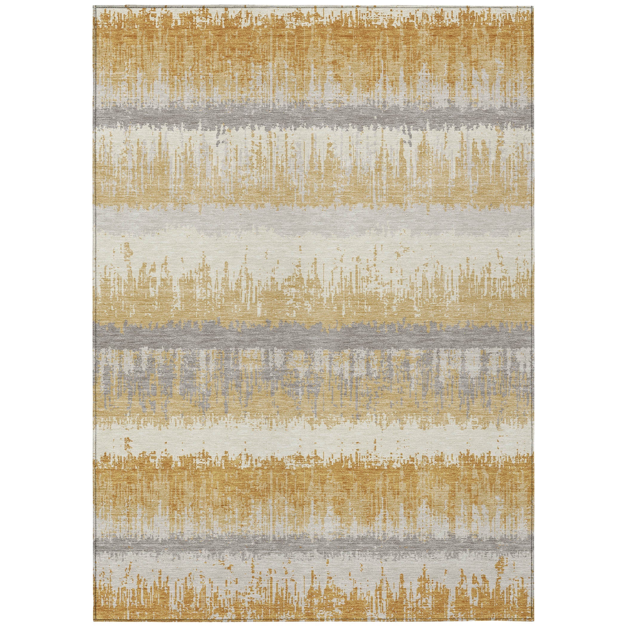 The sleek horizontal stripes and subtle drip effects of our transitional area rug will elevate your homes aesthetic with modern sophistication. This versatile design seamlessly integrates into any space. Crafted to last, its UV stabilized for use in both indoor and outdoor environments and boasts an ultra-thin profile for convenience. Additionally, the machine-washable material and pet-friendly quality make it an ideal choice for families looking for both style and practicality.