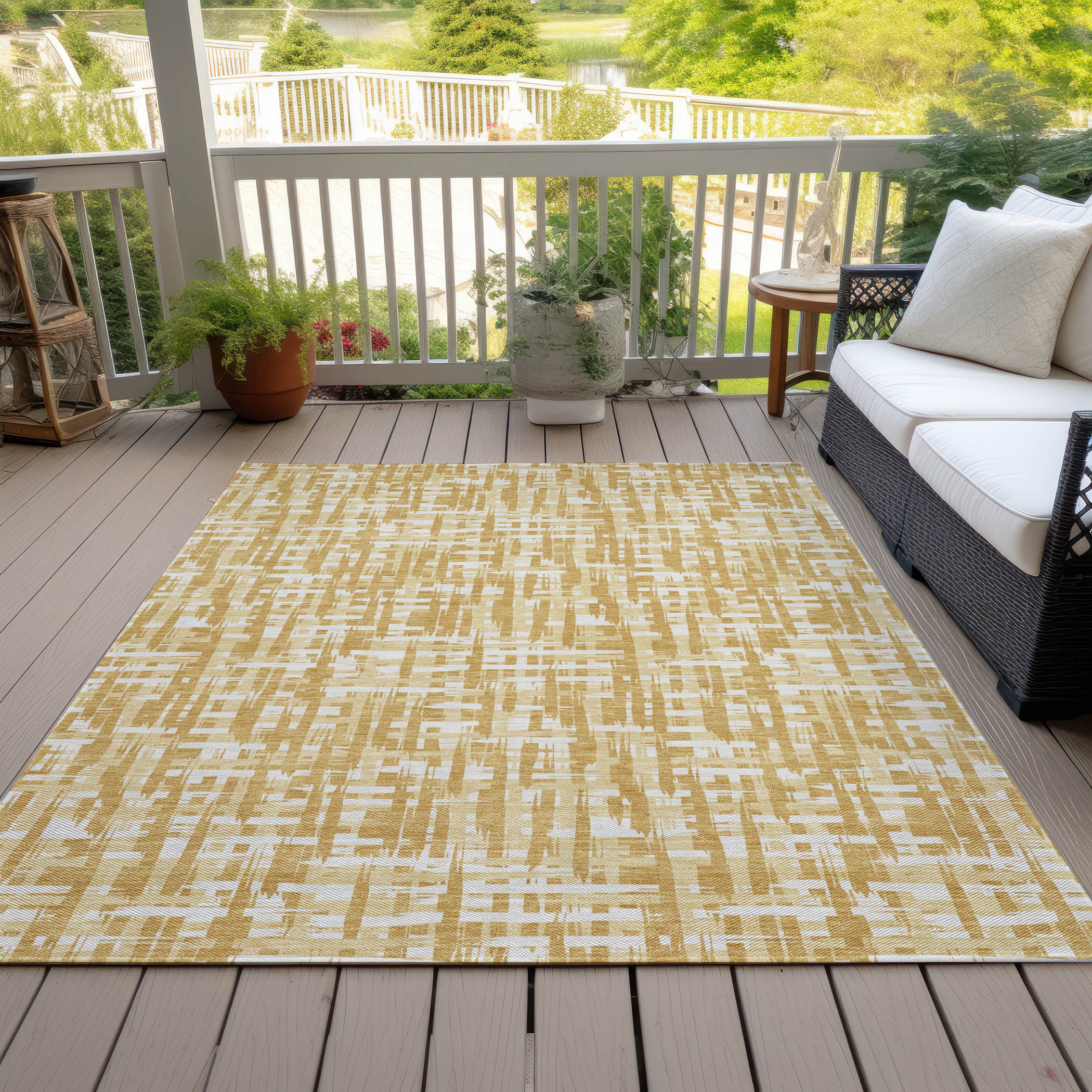 Add a touch of sophistication with our area rug, where crisscrossing lines interlace beautifully, creating a transitional masterpiece. The dynamic lines bring a vibrant energy to any room. Designed for versatility, it is UV stabilized to endure the elements, ultra-thin for seamless integration into any setting, machine-washable for easy maintenance, and built to withstand the demands of a busy, pet-filled household.