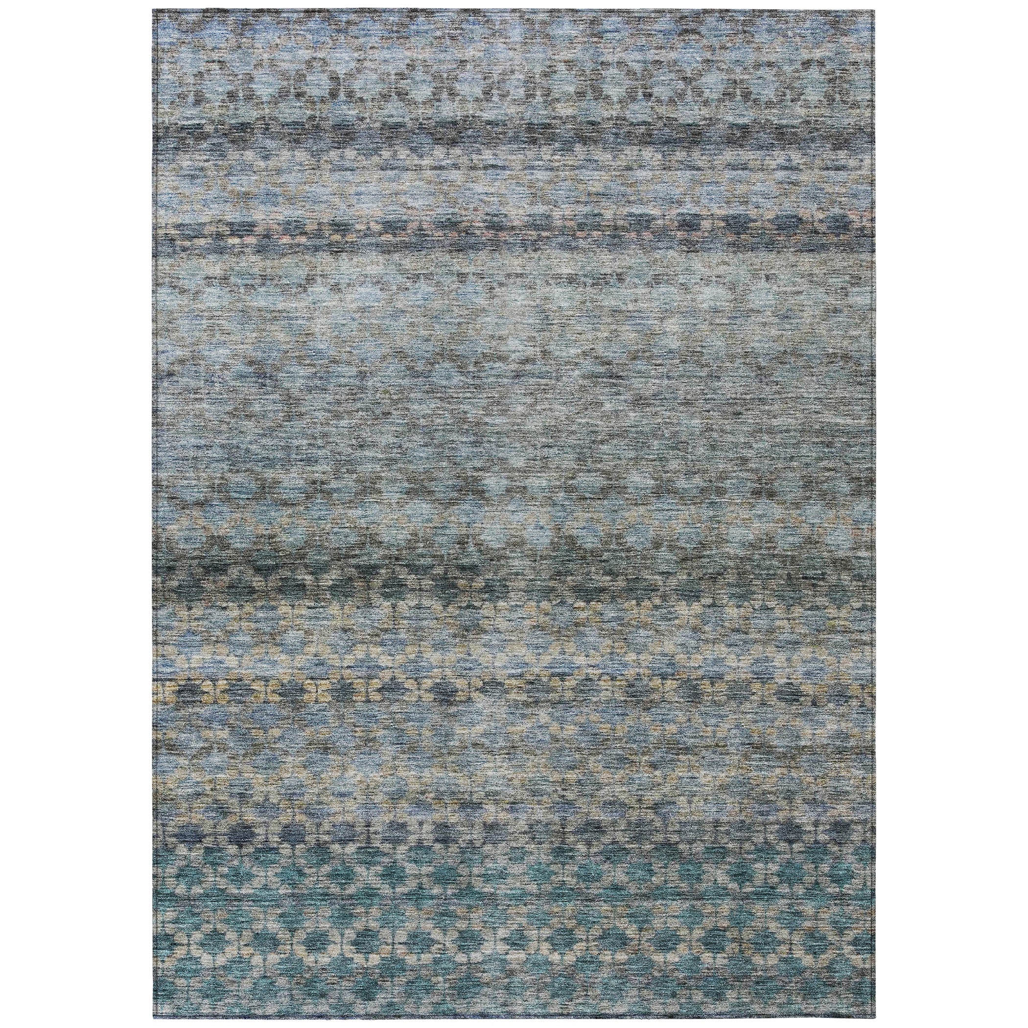 Our area rug, adorned with small motifs in horizontal lines, brings a refined touch to transitional style. It's UV stabilized for durability in any environment and boasts an ultra-thin construction for easy placement. Additionally, it's machine-washable, making it an excellent choice for busy households with pets and children.