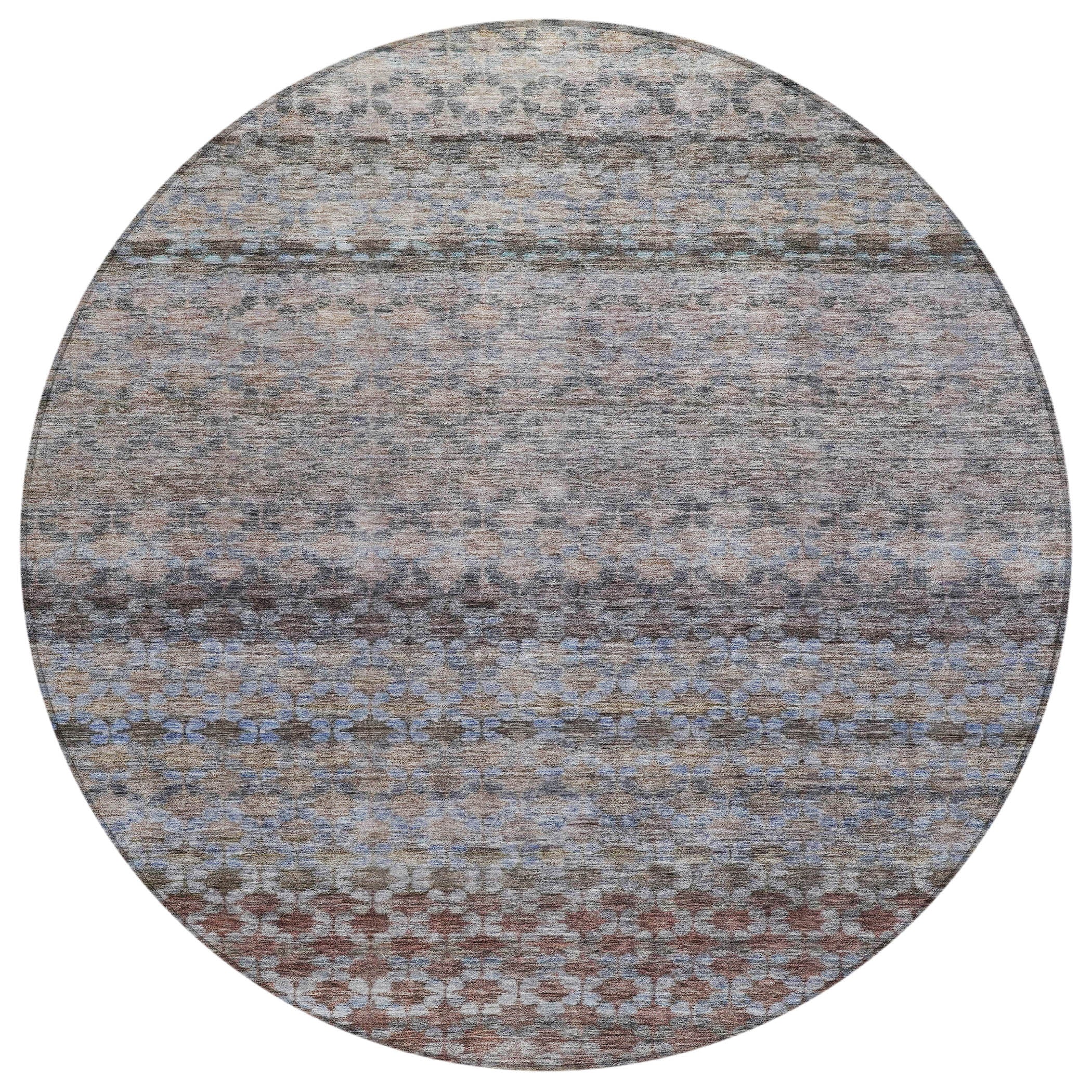 Our area rug, adorned with small motifs in horizontal lines, brings a refined touch to transitional style. It's UV stabilized for durability in any environment and boasts an ultra-thin construction for easy placement. Additionally, it's machine-washable, making it an excellent choice for busy households with pets and children.