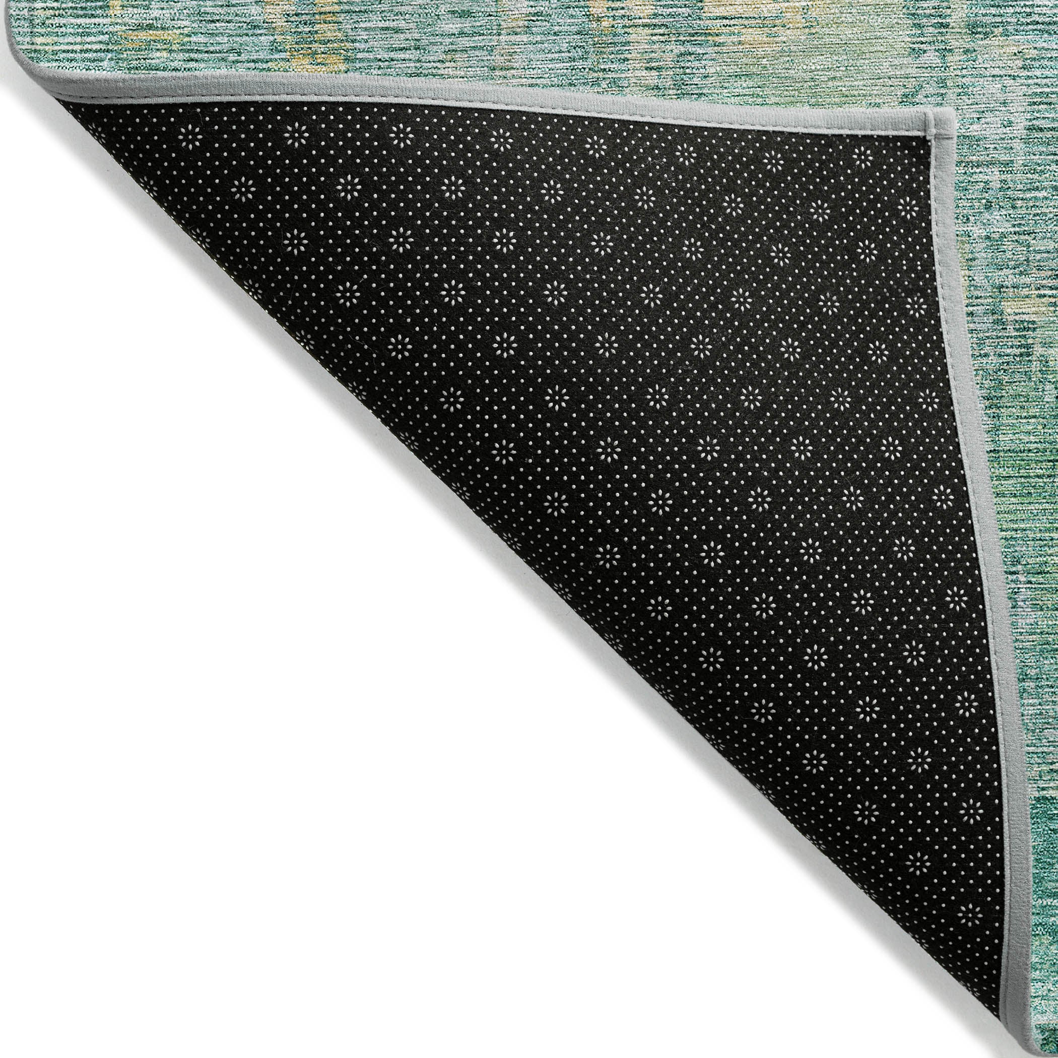 Soft color splashes give this rug a contemporary feel, ideal for transitional style spaces with its modern pattern. The muted tones add a touch of elegance and freshness. UV stabilized for indoor or outdoor use, it ensures lasting appeal. The ultra-thin profile lies flat and is machine-washable for convenience. Family and pet-friendly, this rug merges beauty with functionality.