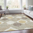 Chantille ACN749 Beige rug, a stunning addition to your home decor. Featuring a one-of-a-kind pattern of floating tear dropped shaped motifs, this rug perfectly blends transitional and mid-century modern design elements. The unique design exudes a sense of lightness and fluidity, making it an ideal choice for any contemporary setting.