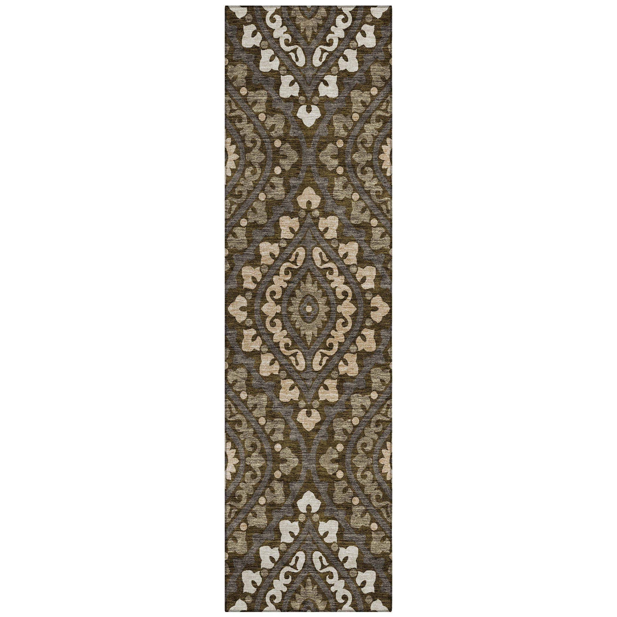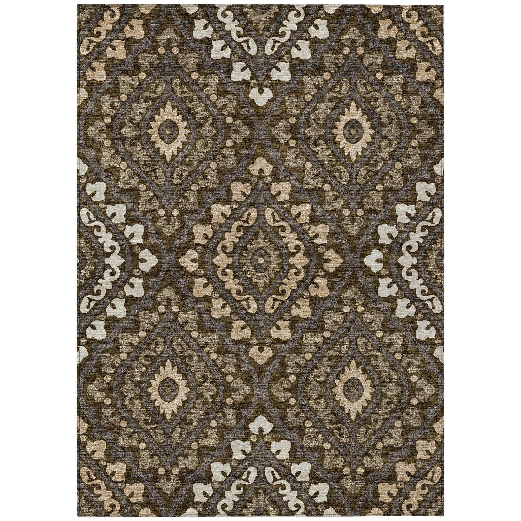 Chantille ACN761 Fudge, a transitional rug that effortlessly combines contemporary elegance with classic charm. Featuring modern diamond medallions with intricate detailing, this rug offers a sophisticated touch to any space. The diamond pattern adds a modern twist, making it a versatile addition to your decor.