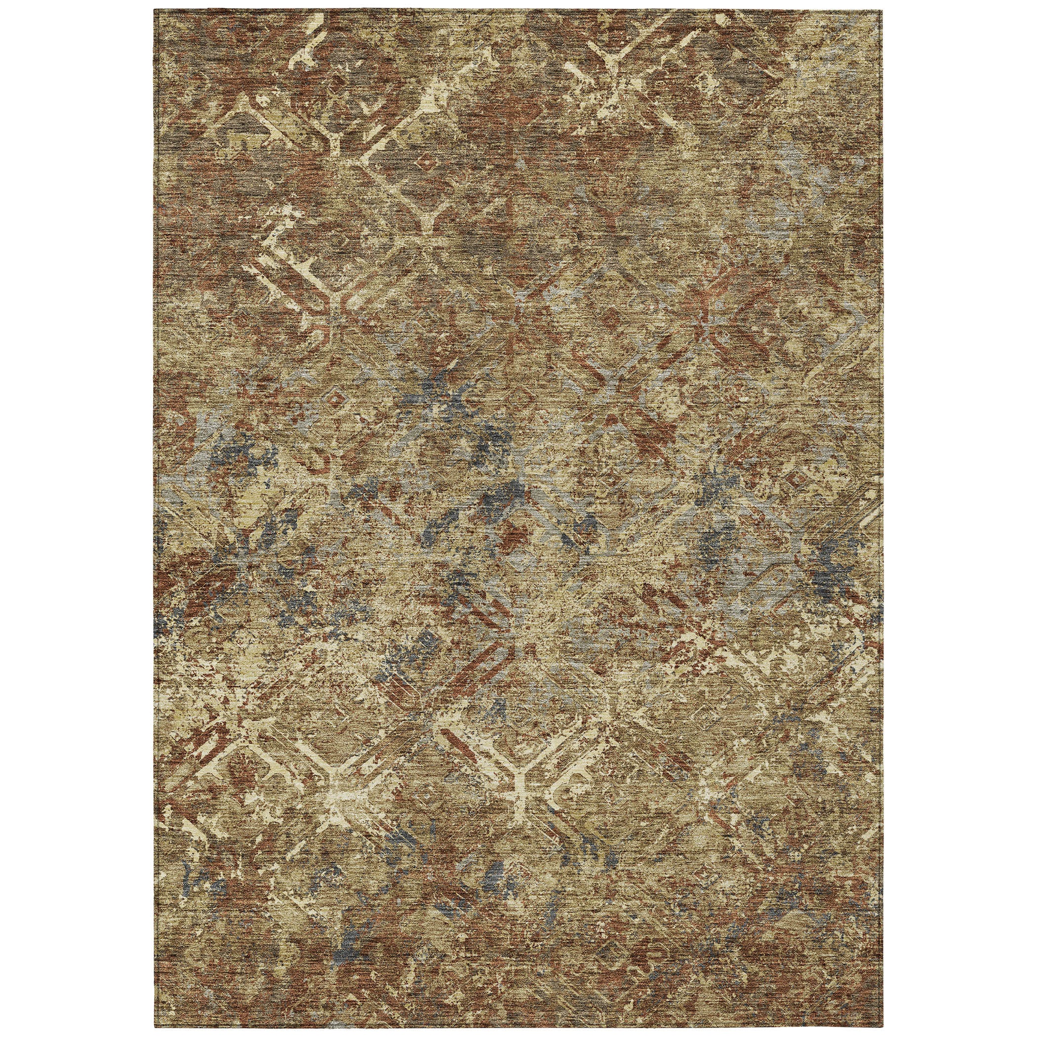 Chantille ACN768 Brown rug, a stylish addition to any room. The design showcases lattice type diamonds that gracefully lead the eye towards a center flow of colors. This transitional diamond pattern effortlessly blends classic charm with modern aesthetics, making it a versatile choice for various decor styles.