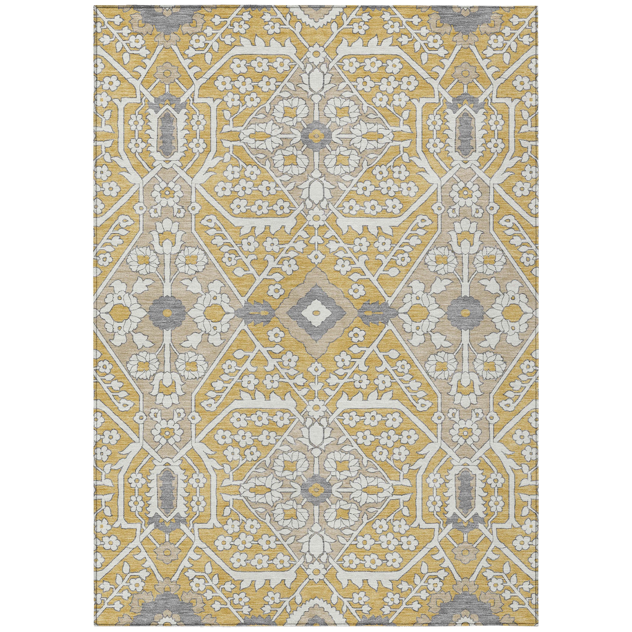 Chantille ACN863 Gold area rug, a perfect fusion of traditional charm and modern aesthetics. Step up your decor game with its updated Agra pattern adorned with striking oversized diamonds. This rug effortlessly marries classic design elements with contemporary flair, creating a stylish statement piece for any room.