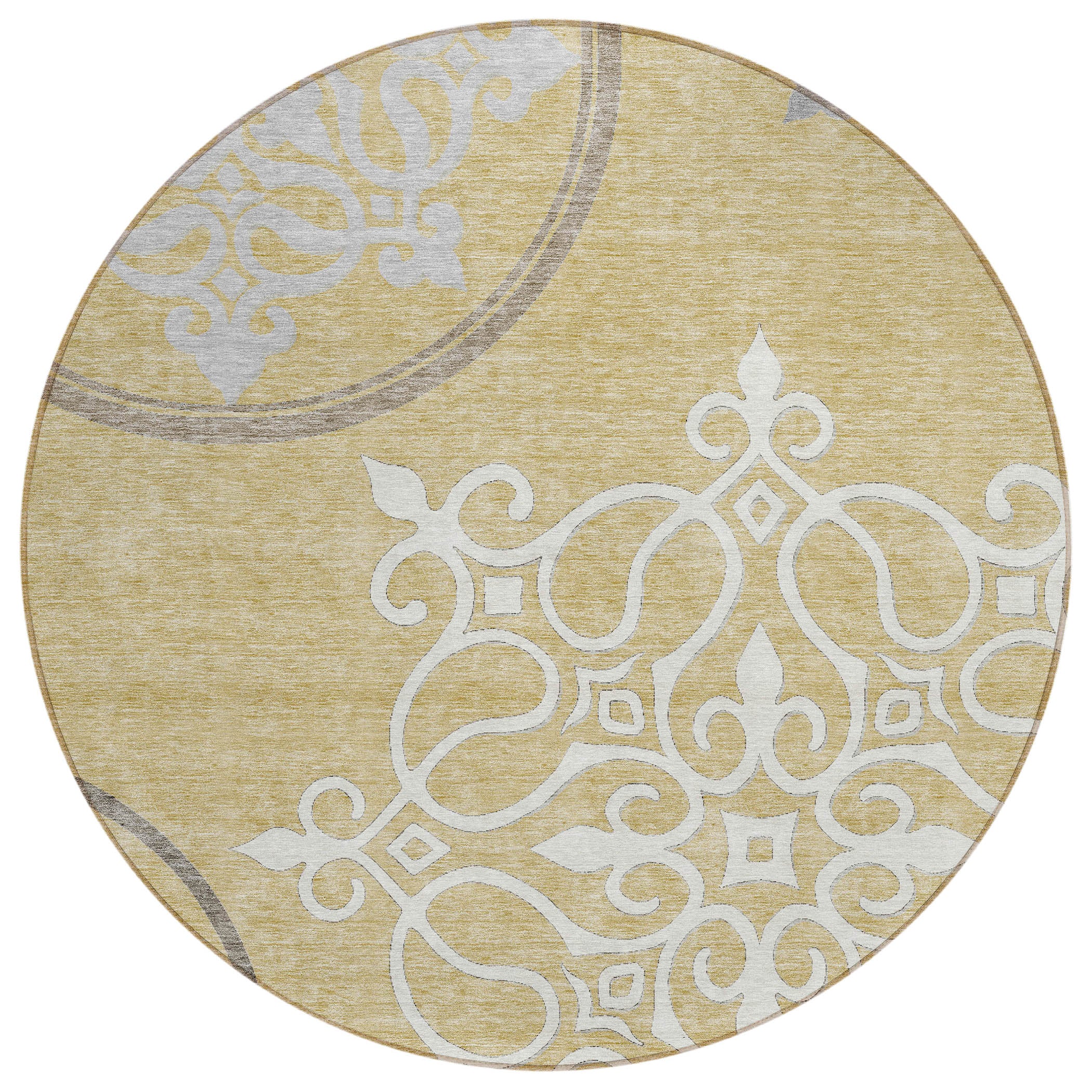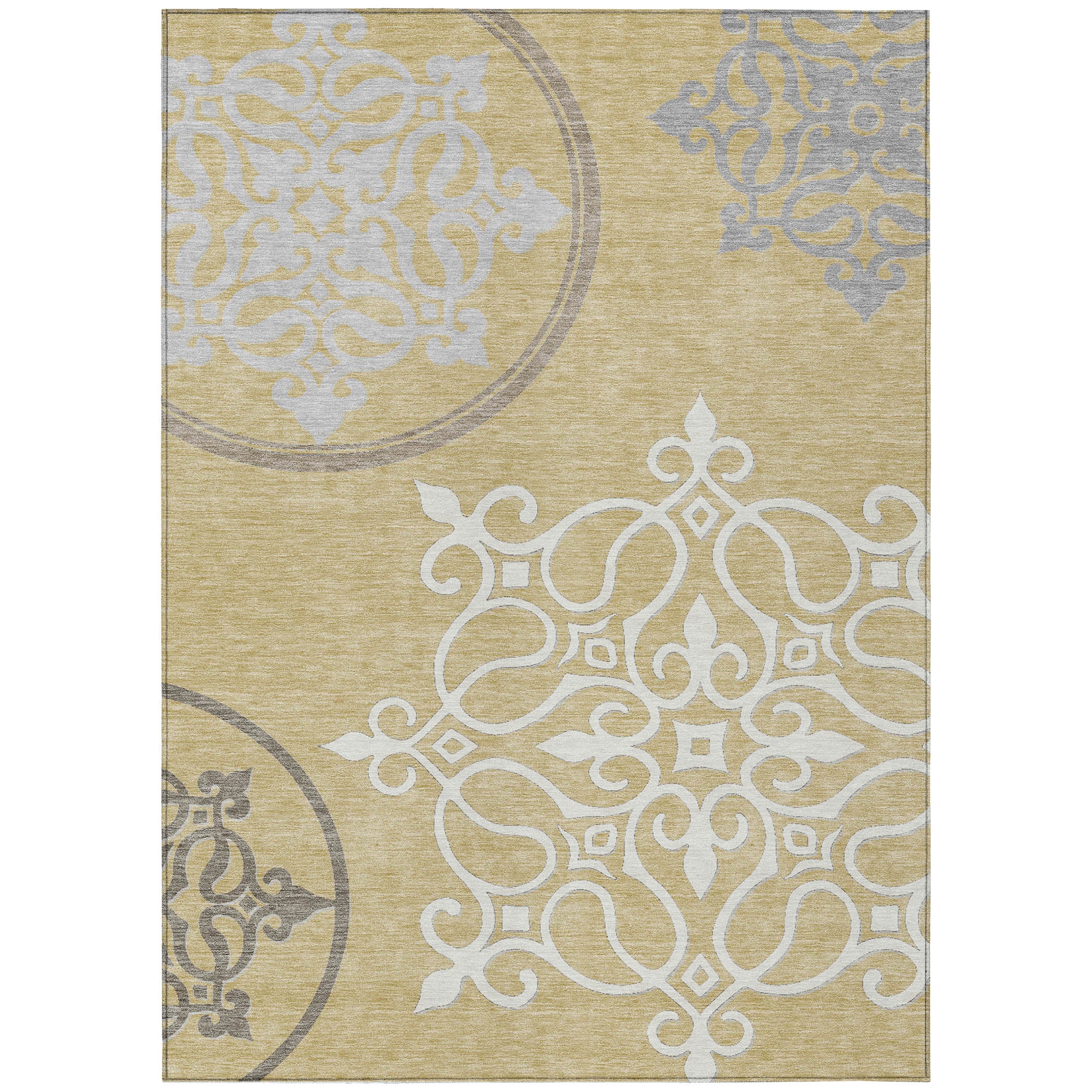 Introduce a touch of sophistication to your living space with the Chantille ACN874 Gold area rug. This exquisite piece seamlessly combines wrought iron scroll medallions with a modern design, creating a transitional aesthetic that is truly captivating. Not just a rug, it serves as a bold statement piece that elevates any room it graces.