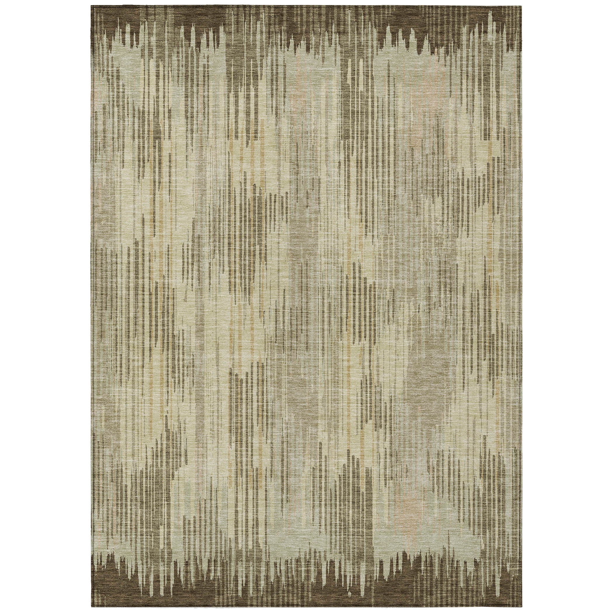 Chantille ACN893 Brown area rug, a versatile piece that will elevate any room with its unique design. Featuring vertical stripes and textural contrasts, this rug offers a sophisticated and dynamic look that complements any decor style seamlessly. Not just a style statement, this rug is also UV stabilized for use both indoors and outdoors.