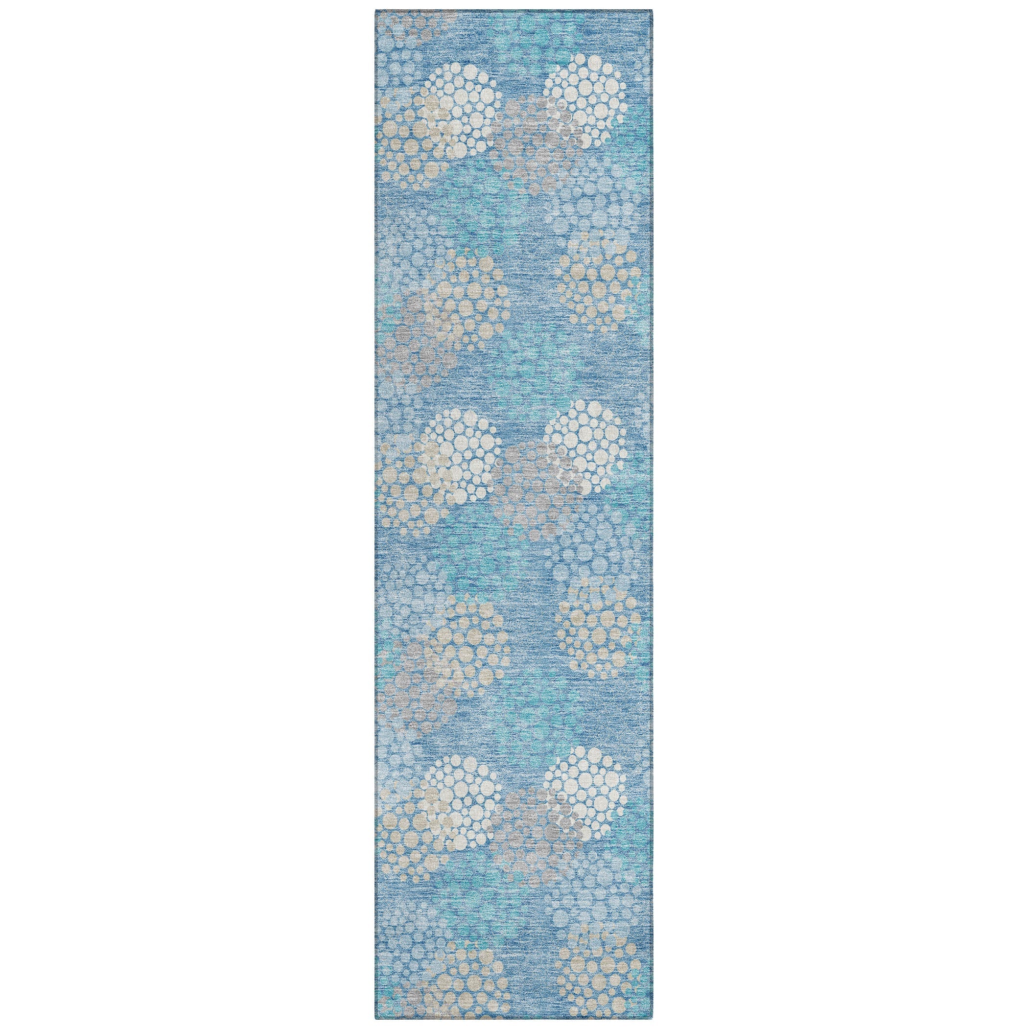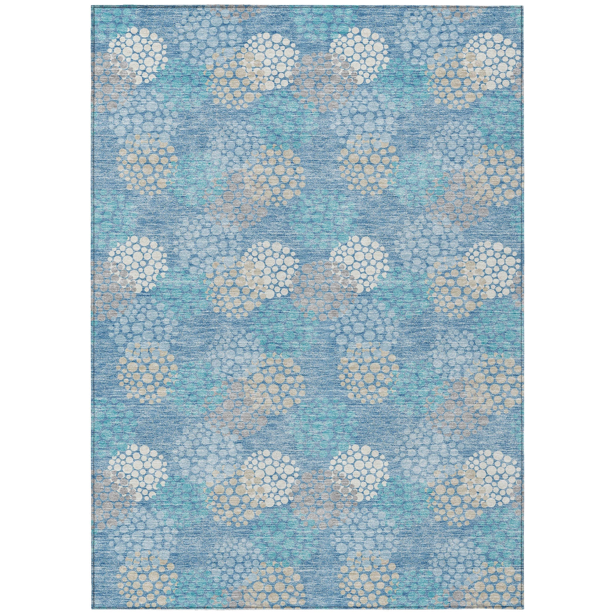 Chantille ACN908 Sky area rug, a chic addition to enhance your home decor effortlessly. This stylish rug features a unique design of small circles crafted from tinier circles, creating a modern and fresh look for any space. The transitional design, centered around circles, blends seamlessly with various decor styles for a versatile touch.