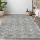 Chantille ACN918 Gray area rug, a perfect blend of elegance and functionality. Step into a world of sophistication as small rectangles unite to create a visually striking horizontal design. This rug seamlessly merges transitional style with linear charm, adding a touch of class to any space.