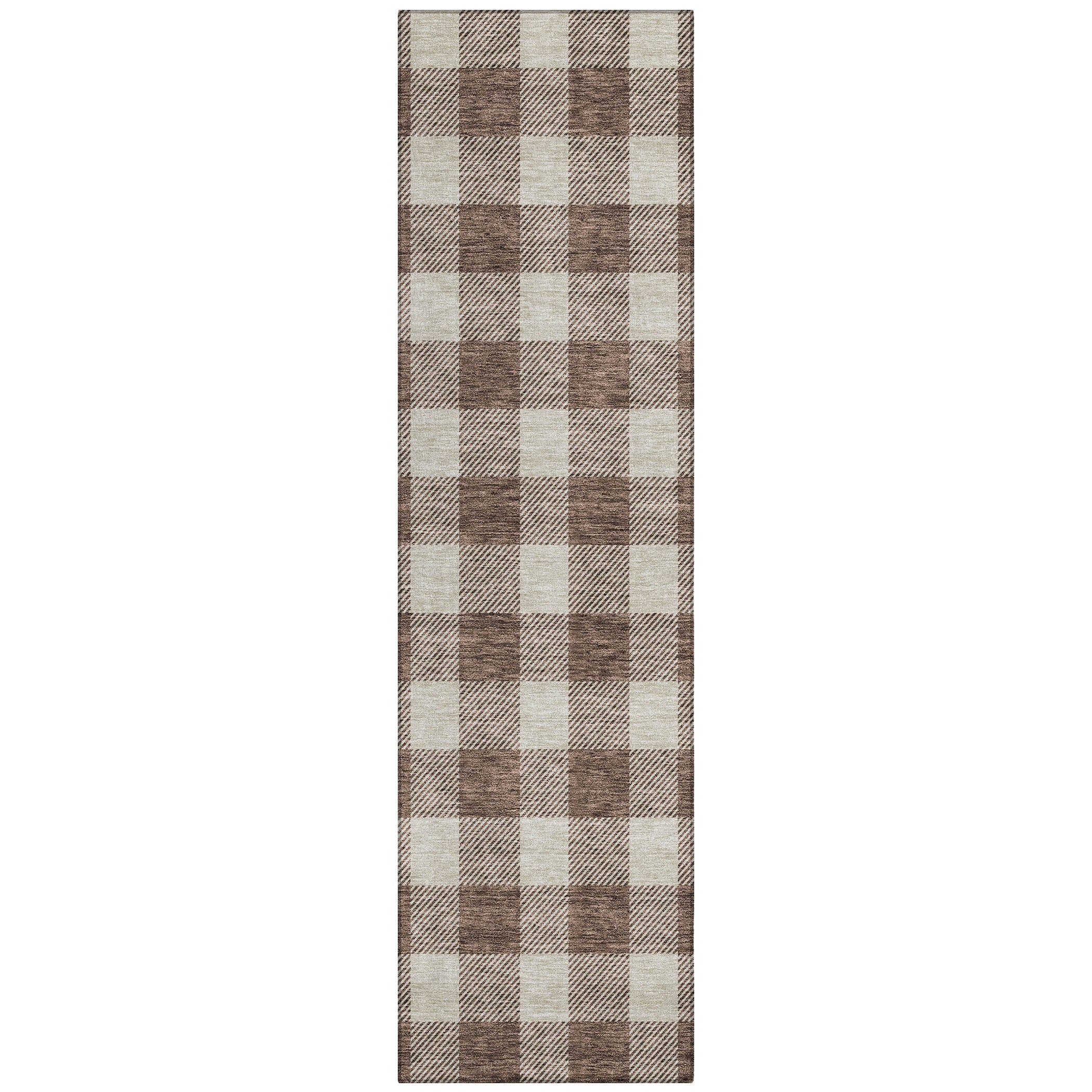 Chantille ACN923 Brown area rug, a perfect blend of transitional and classic plaid styles. This elegant rug is designed to enhance any indoor or outdoor space with its two-tone plaid pattern. Crafted with UV stabilized materials, it ensures long-lasting beauty and durability in any setting.