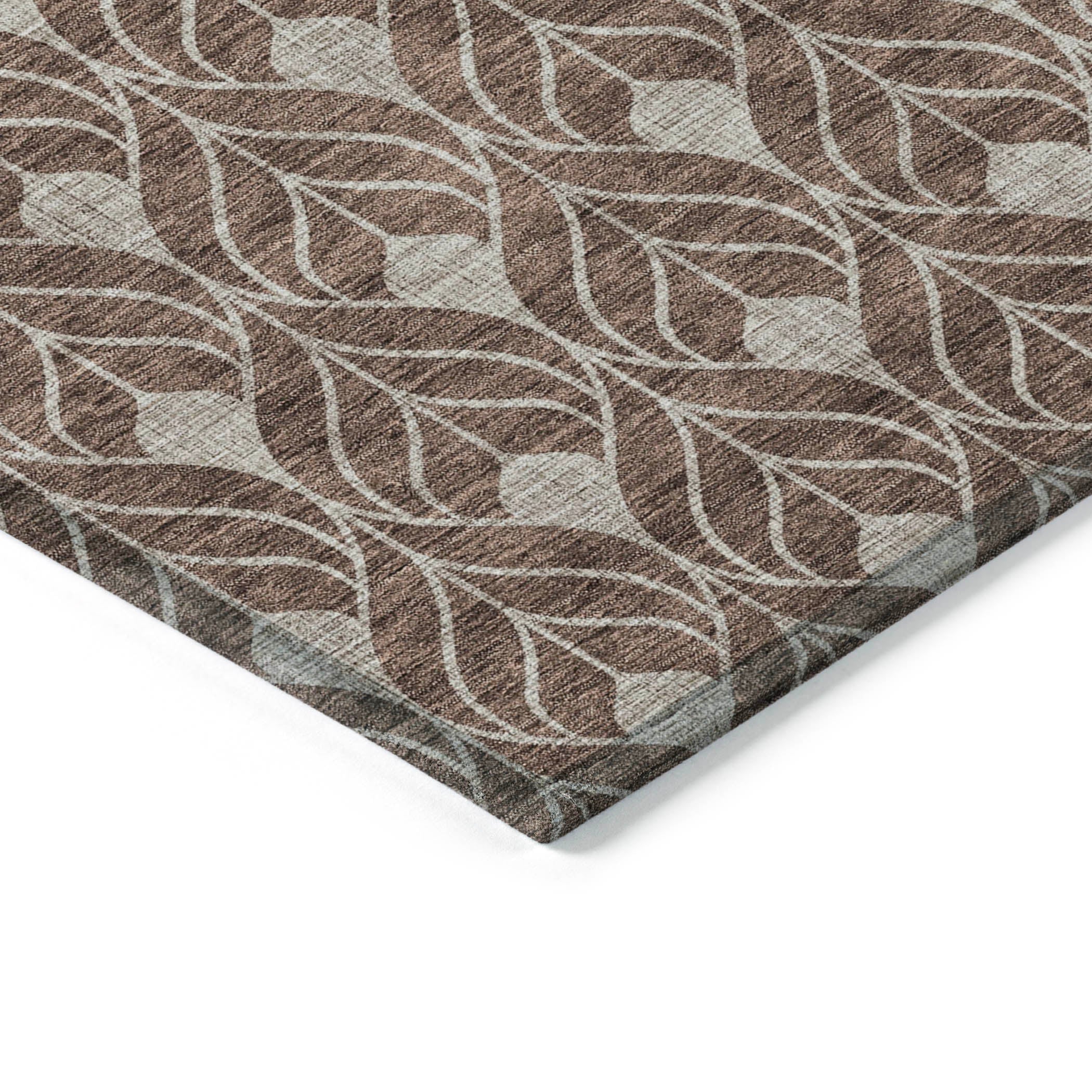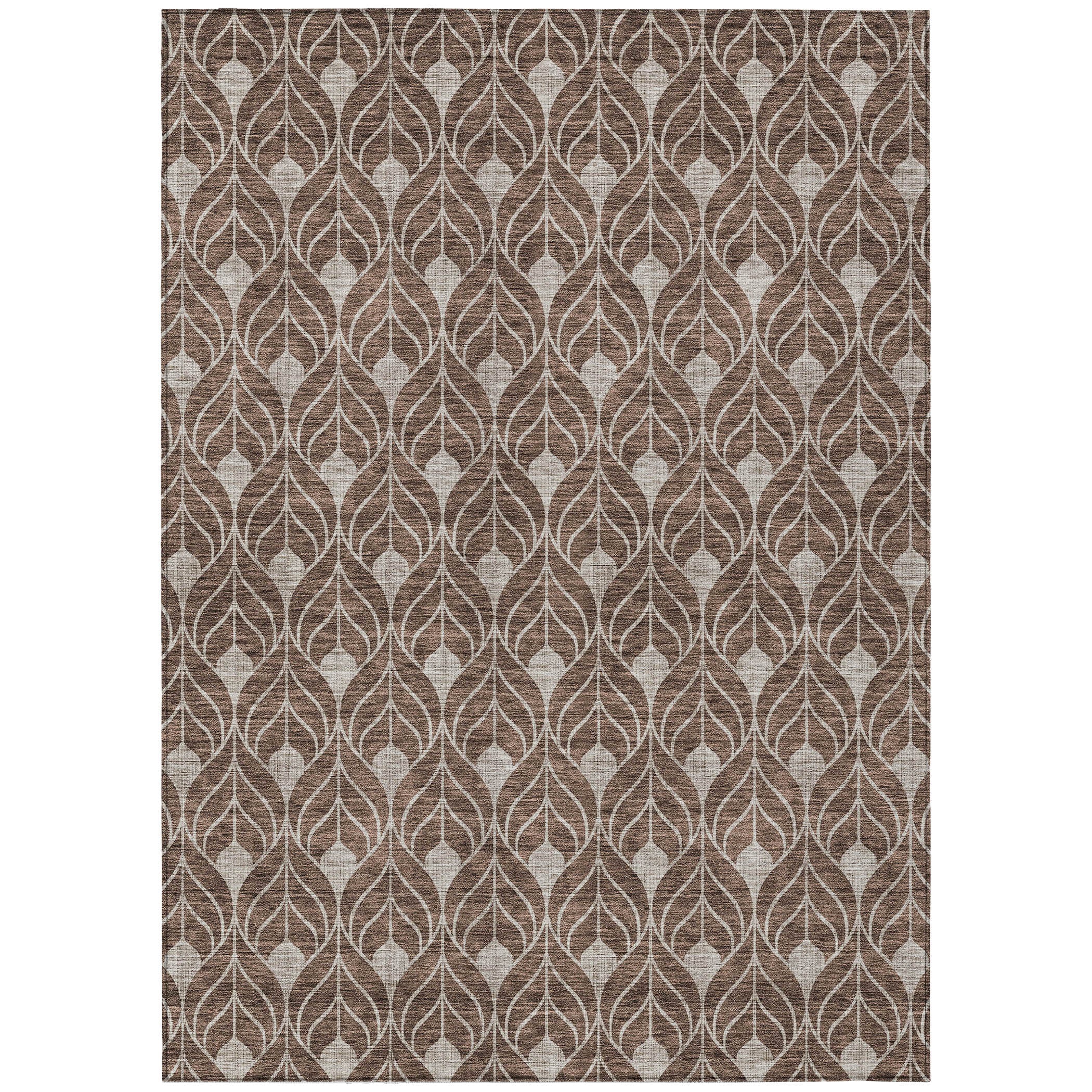 Chantille ACN927 Chocolate area rug, a stylish addition that will enhance the look of your home. This rug boasts vertical teardrop-like shapes in a transitional geometric design, blending classic elegance with a modern touch. Designed for versatility, it is UV stabilized to withstand any environment, whether placed indoors or outdoors. The ultra-thin construction and machine-washable feature make it ideal for busy households with pets and children, ensuring easy maintenance and lasting beauty.