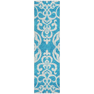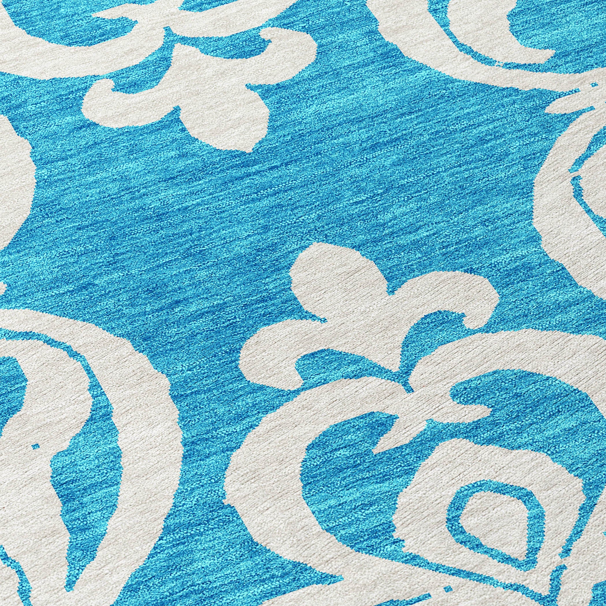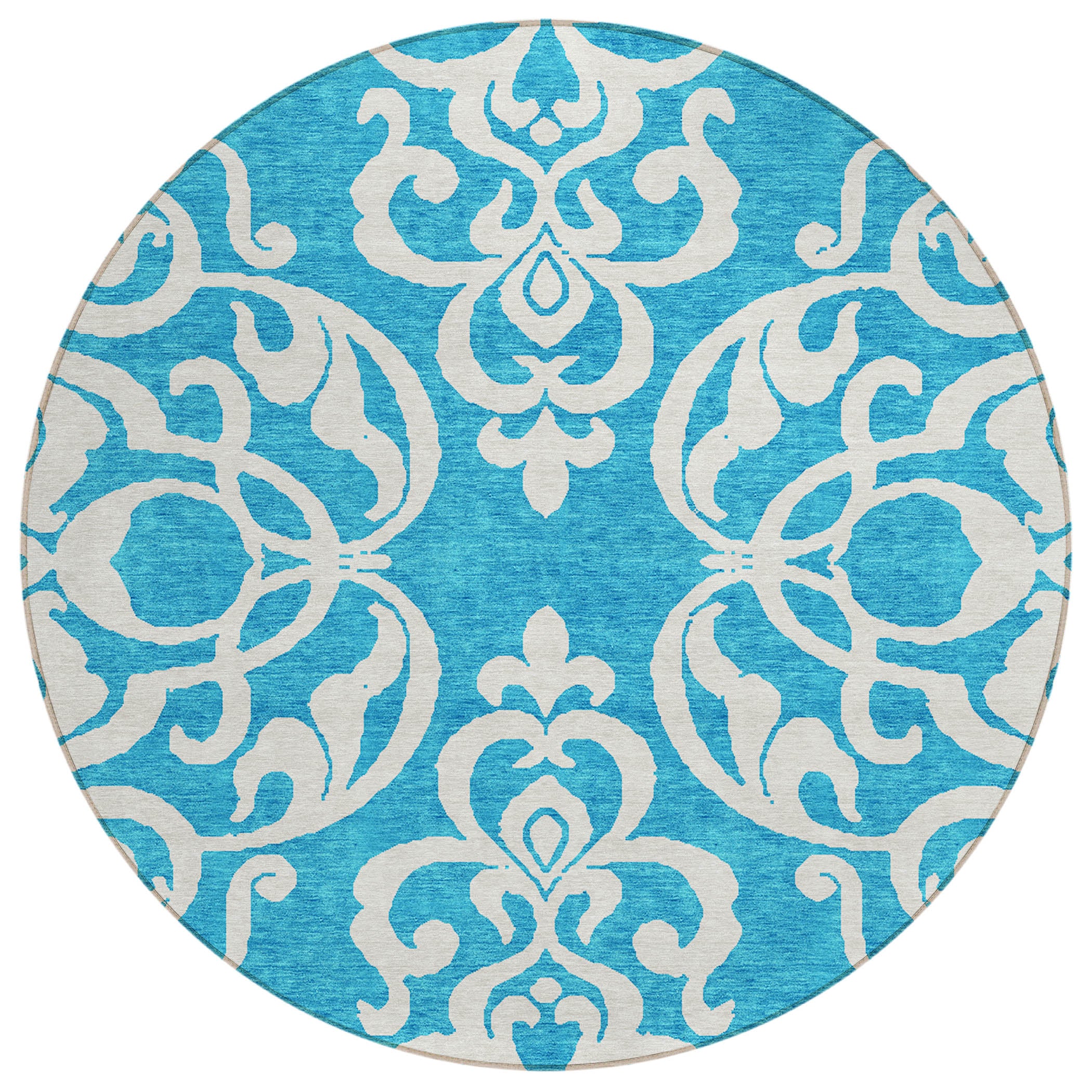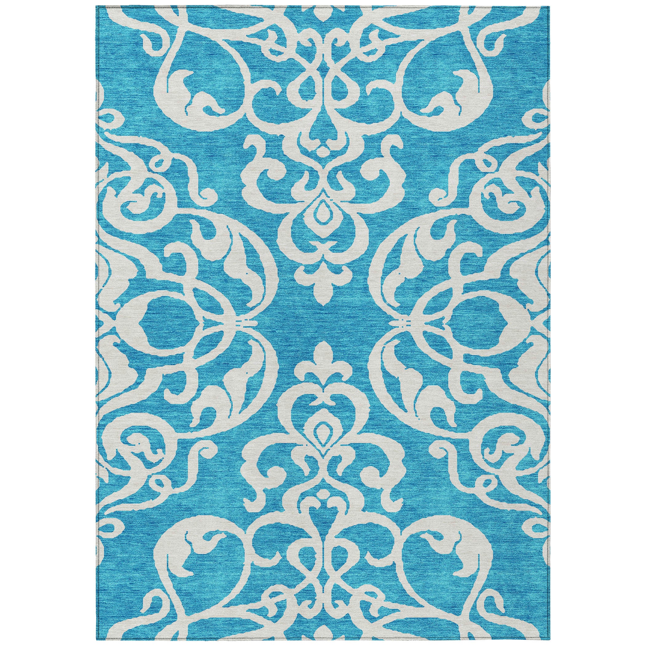 Chantille ACN973 Turquoise area rug, a blend of modern style and classic sophistication. This versatile rug showcases an oversized damask design that adds a contemporary touch to any space. The unique split quarters of the motif bring a fresh twist to traditional elegance, perfect for those seeking transitional charm.