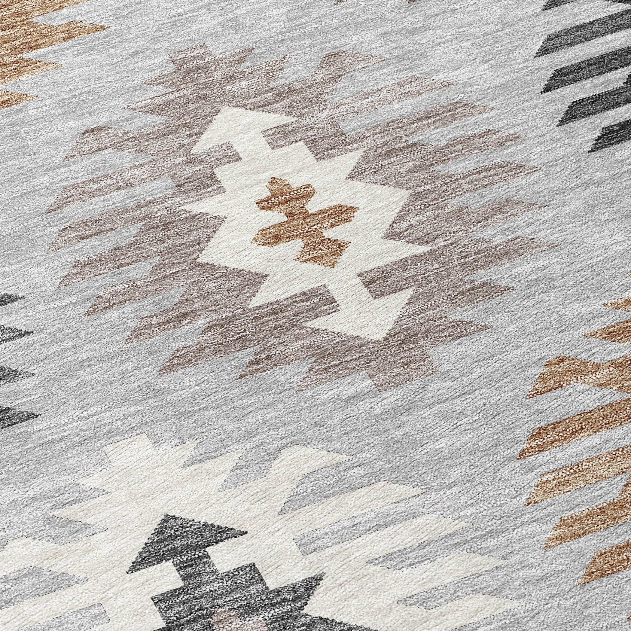 Chantille ACN983 Silver area rug, designed to bring a touch of southwestern warmth into your home. This rug features overscaled motifs and a charming border, effortlessly merging traditional and contemporary styles. Its UV stabilization guarantees durability for use in any room, while its ultra-thin design allows for easy incorporation into your existing decor.