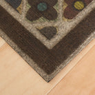 exquisite Flowery Tiles Chestnut, a stylish entry mat from Mohawk Home that will elevate the look of your doorway. The serene color palette features rust orange, cream, olive green, turquoise blue, charcoal grey, brick red, and chocolate brown, accentuating the floral and diamond design. This timeless doormat is available in a convenient size of 2 x 4, making it perfect for any entrance.