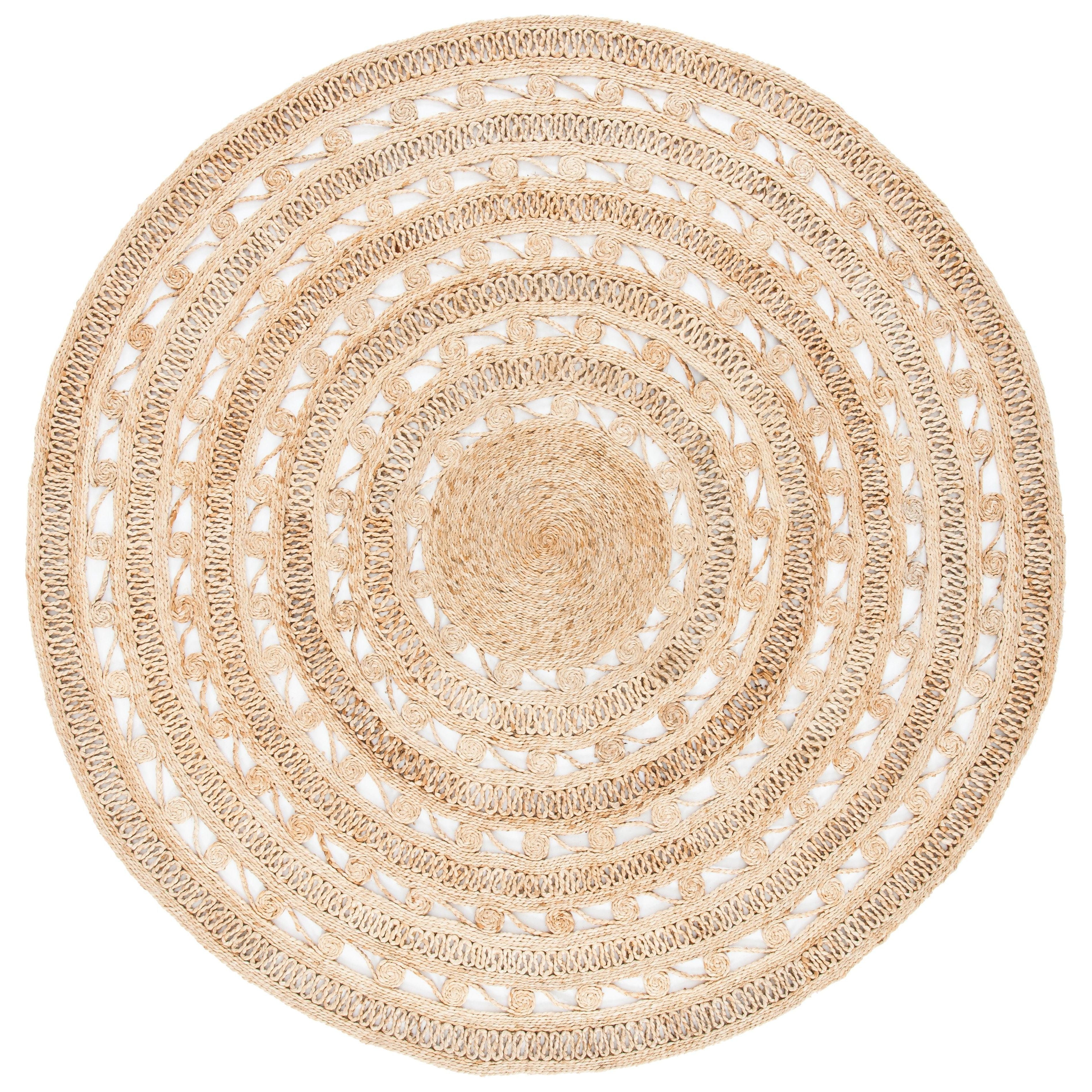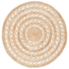 Enhance the charm of your cozy kitchen nook or petite dining area with the Natural Fiber NF169A round rug. Crafted from 100% softened jute fibers and hand-woven by skilled artisans, this elegant rug offers a unique touch to your space. Its rich texture and decorative appeal create a relaxed atmosphere in any room. With an approximate thickness of 0.25 inches, this rug adds warmth and style effortlessly.