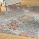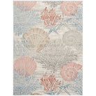 Elevate your living space with the Seaside SDS04 Multicolor rug, inspired by the serene beauty of the ocean. This coastal rug boasts charming coral and seashell motifs in a delightful palette of pink, blue, tan, and grey, set against a soothing soft grey background. Crafted from a luxurious polypropylene-polyester blend, the machine-made rug features a high-low pile that adds depth and texture to any room.