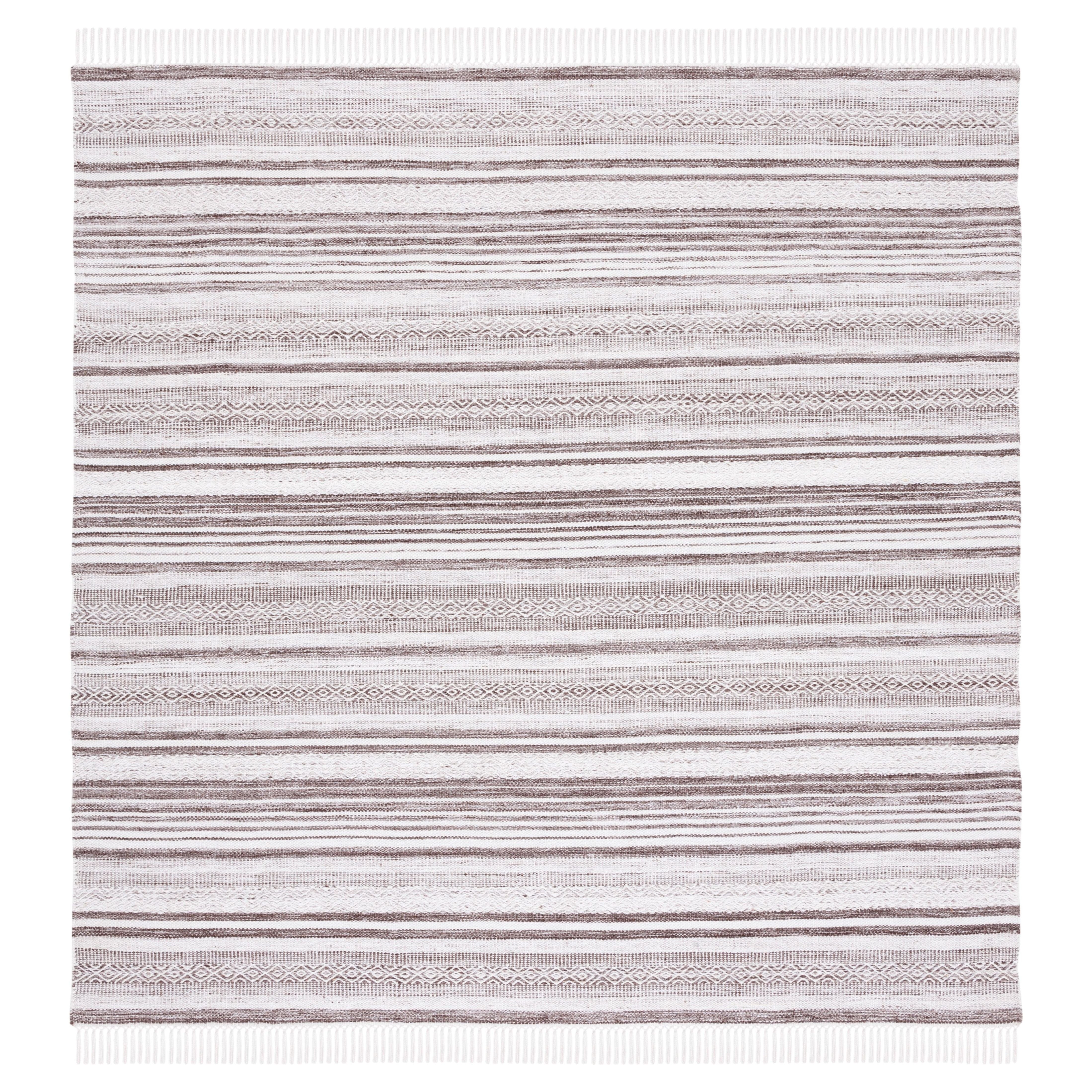 Elevate your home decor with the Striped Kilim STK108T rug, blending rustic-chic aesthetics with a touch of southwestern charm. Crafted from pure wool, this rug features intricate warm, multi-colored stripes and a kilim flat weave inspired by traditional designs. With an approximate thickness of 0.25 inches, it adds texture and visual interest to any space in need of a refresh.