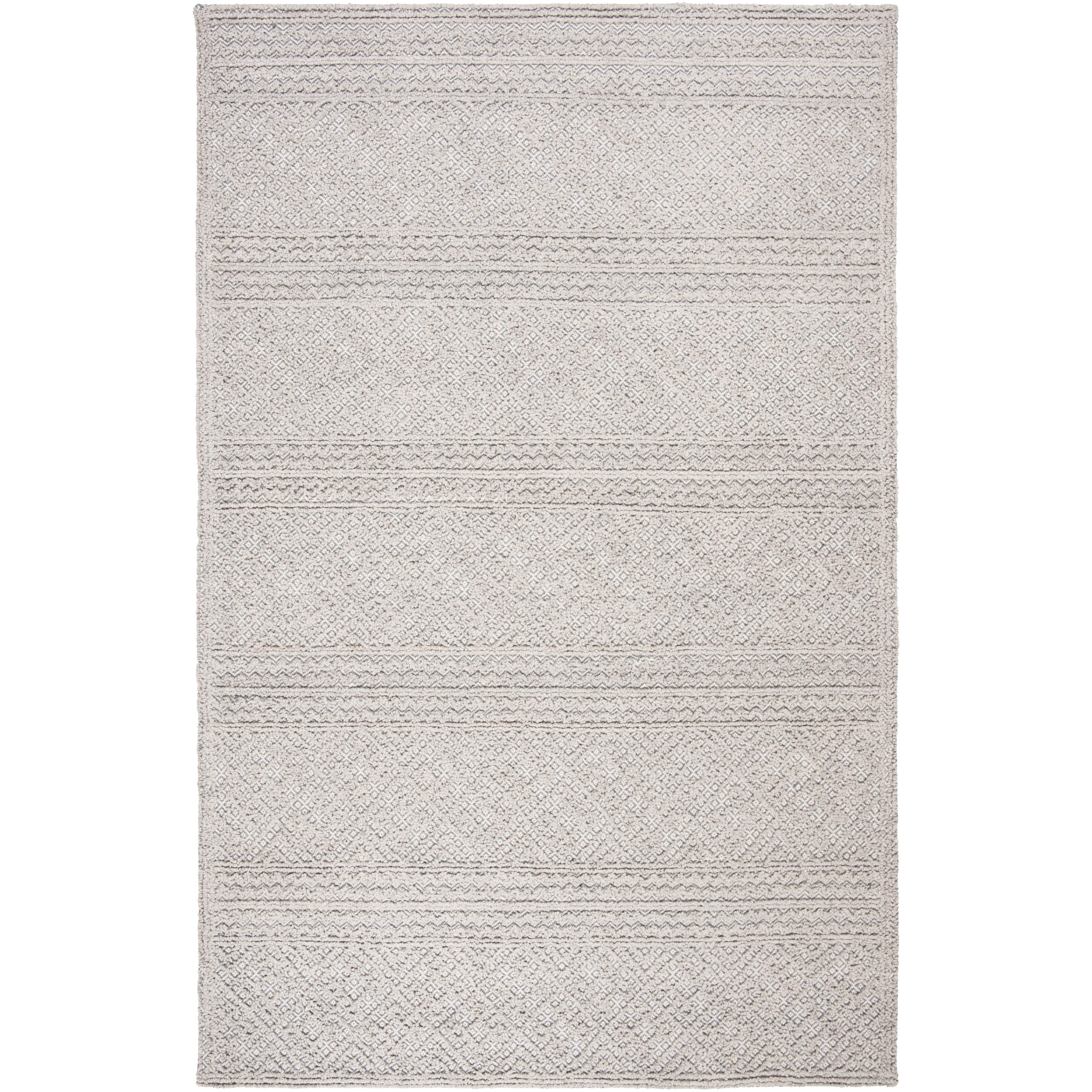 Elevate your living space with the luxurious Trace TRC219F area rug. Delight your senses with its intricate woven raised patterns and textures that add a touch of elegance to any room decor. The understated color palette complements the sophisticated styling of Trace, featuring all-over looped designs that create a regal contrast against the solid colored field. Hand-tufted using pure wool, this rug offers both comfort underfoot and a cozy warmth to your home decor, making it a perfect addition to any space.