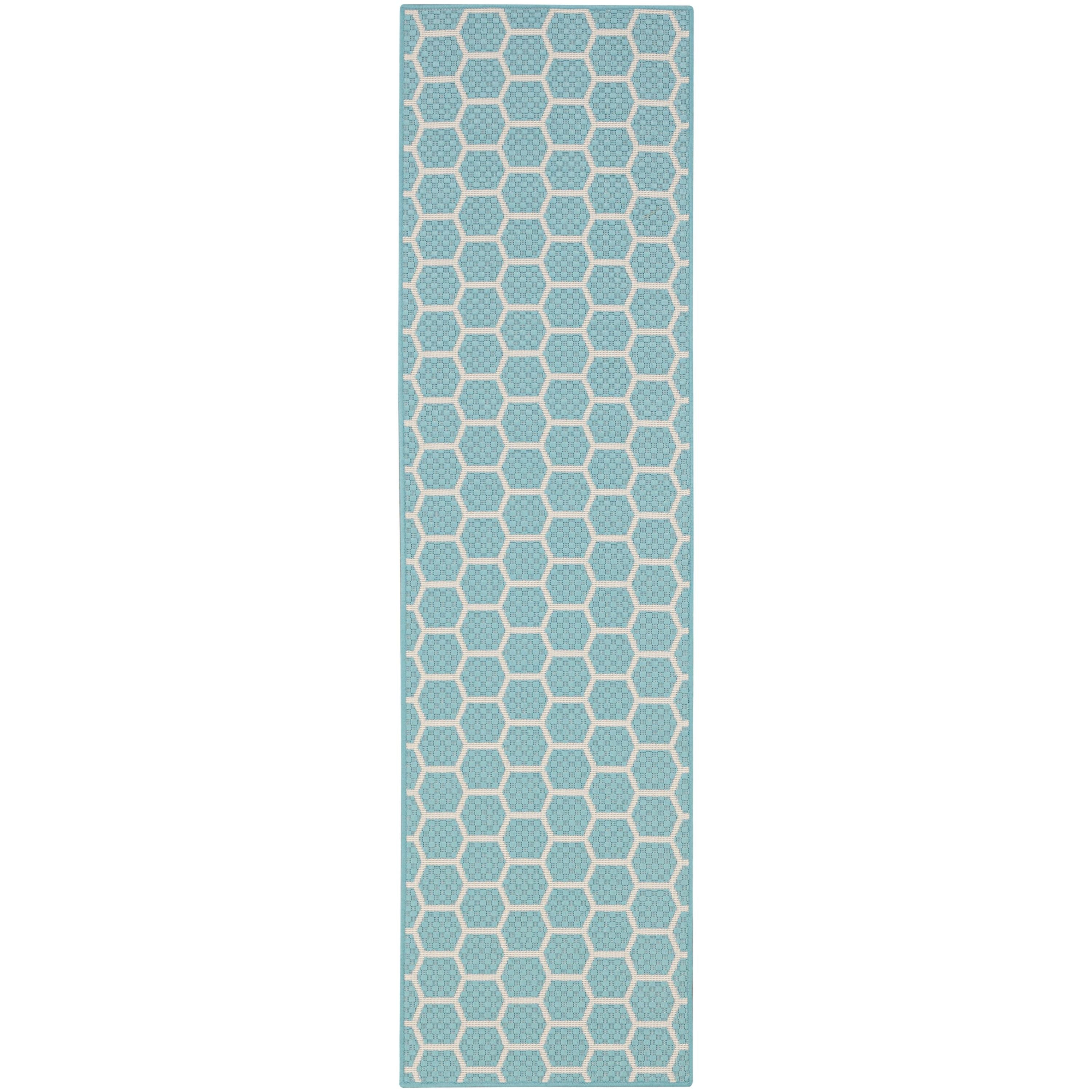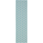 Elevate your outdoor space with the vibrant Twist Reversible TWS01 Aqua rug. Featuring a striking aqua blue geometric pattern, this rug adds a modern touch to any setting. The unique honeycomb design allows you to switch up your decor by simply flipping the rug over to reveal an inverted version of the same pattern. With this reversible feature, you get two looks in one versatile piece that seamlessly transitions between indoor and outdoor areas. Crafted from durable polypropylene and polyester fibers, this rug is both low maintenance and easy to clean, making it a practical and stylish choice for your home.