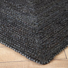 Kerala Gray jute rug, a sophisticated addition to any home decor. This versatile piece is perfect for stair landings, reading nooks, bathrooms, or bedrooms, adding a touch of understated elegance to your space. Handmade with care, each rug showcases the intricate beauty of woven textures while promoting sustainable harvesting practices and ethical labor standards.