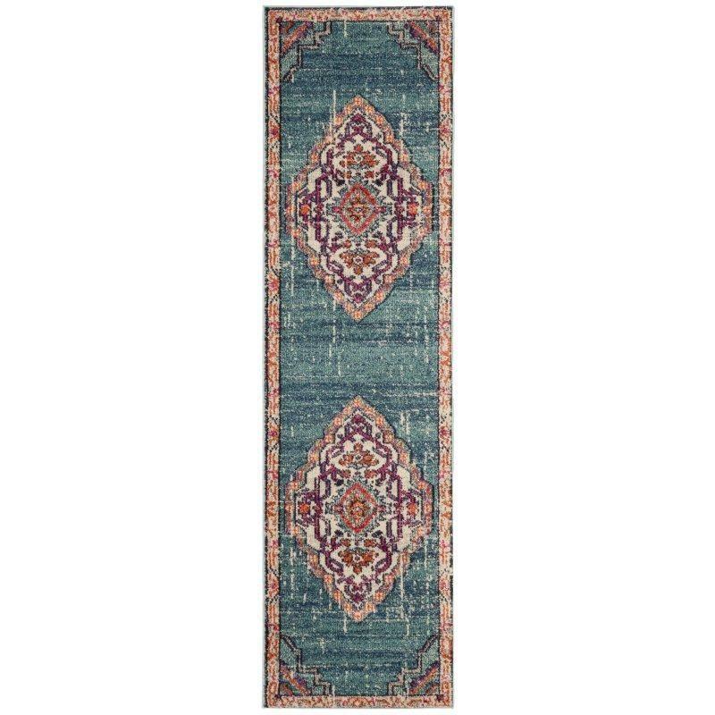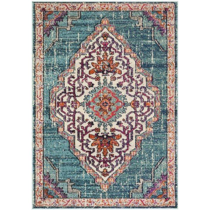 Monaco MNC254J Blue Multi rug, a vibrant addition to any space. This collection boasts a free-spirited design with a Bohemian-chic flair that combines folkloric and formal Persian elements. The mix of high and low loop pile adds texture to the rug, which is power-loomed using durable polypropylene material. The classic textures and trendy erased-weave looks make this rug a versatile choice for any room in your home.