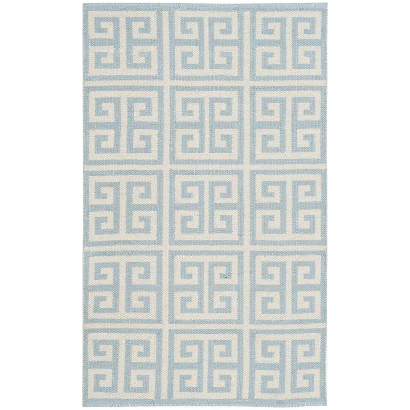 stunning Montauk MTK724K Light Blue Ivory rug, a versatile piece that effortlessly blends casual designer style with coastal or contemporary interiors. Hand-crafted in India using high-quality cotton, these flat weave rugs boast vibrant colors and classic Ikat tie-dye effects for a unique touch.
