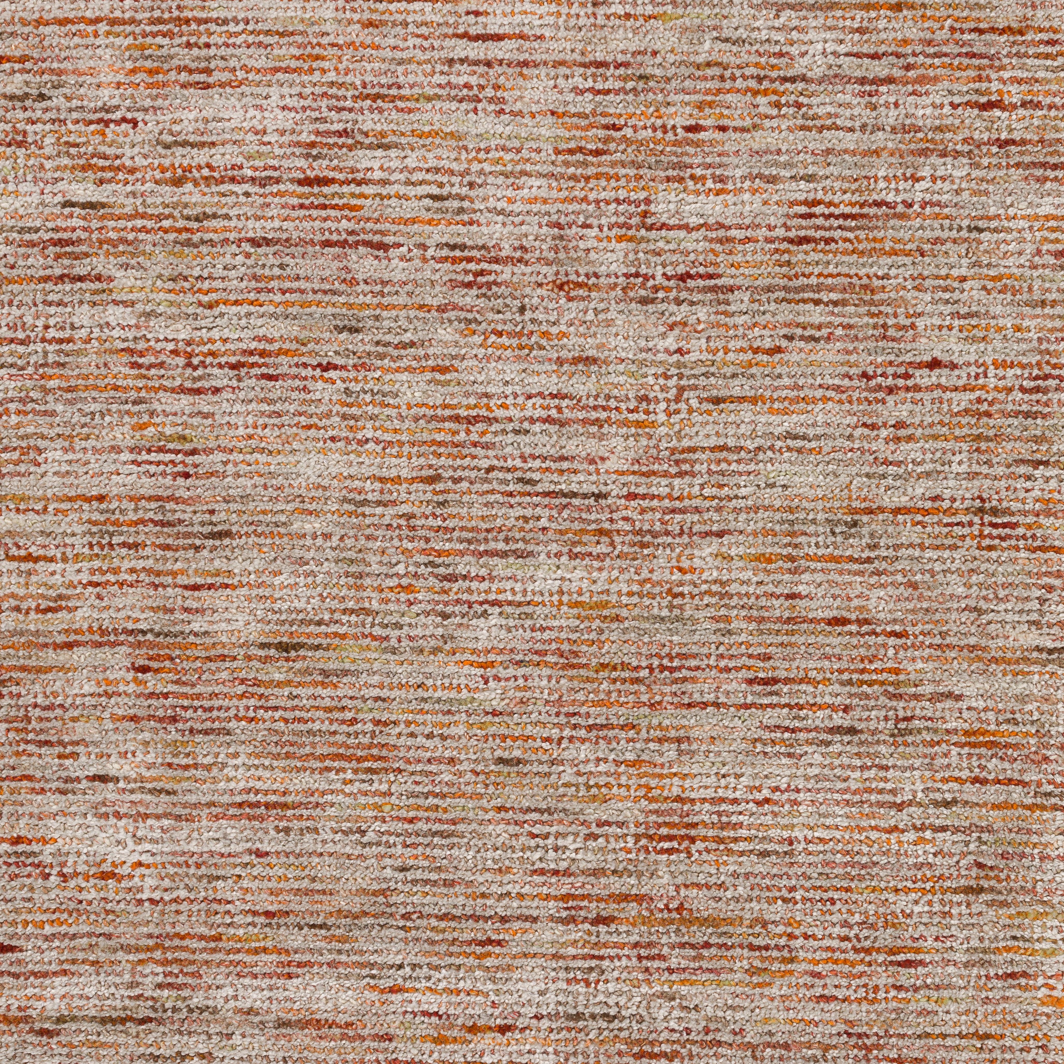Arcata AC1 Paprika, a part of the elegant Arcata Collection. This rug exudes subtle sophistication with its multi-tonal, broken horizontal stripes set against a neutral backdrop. Crafted from hand-spun wool with delicate viscose accents, it offers a perfect blend of durability and softness.