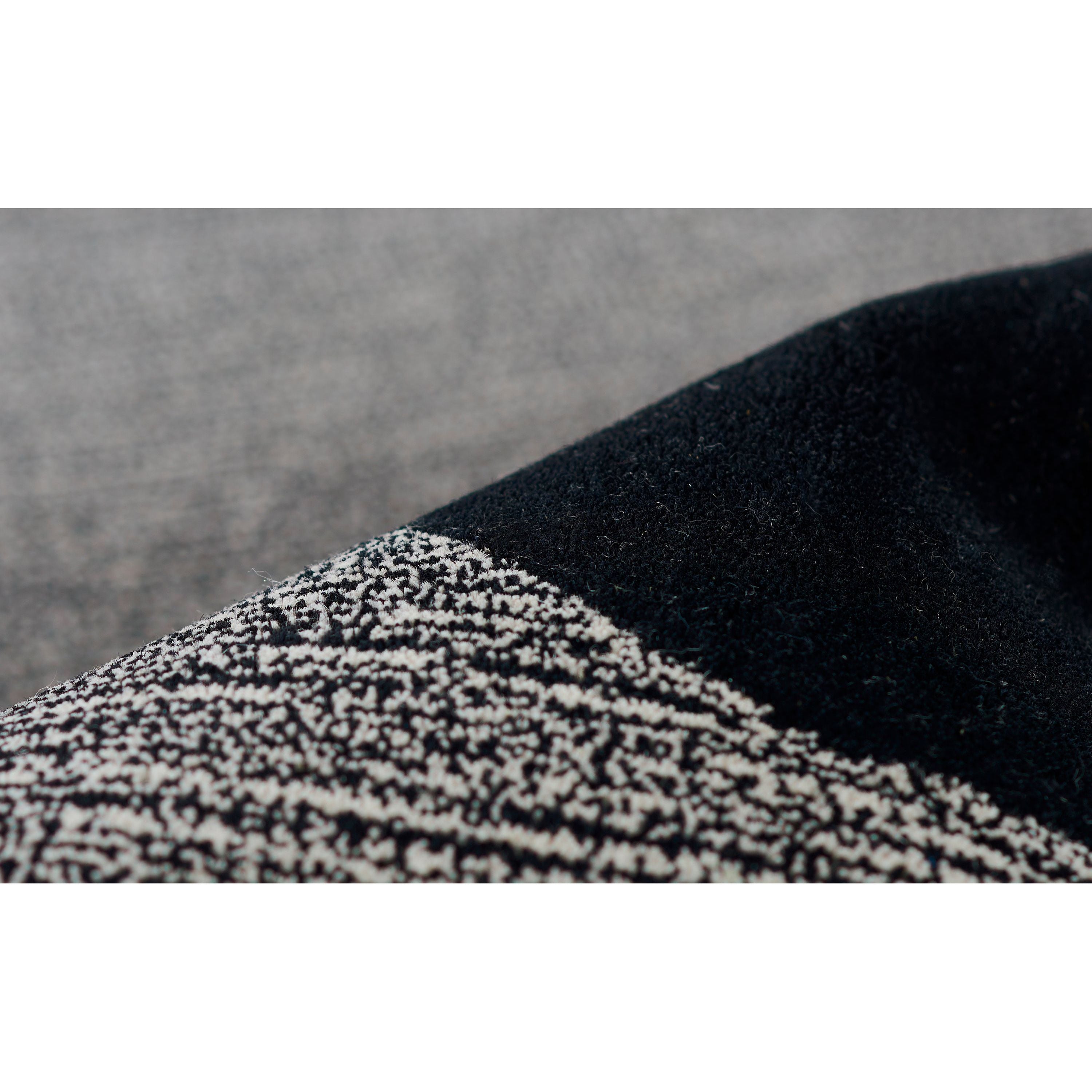 stylish Simba Sim 9 Black rug from our exclusive collection. Crafted using premium hand-tufted New Zealand wool, this rug combines modern design with durability. The tone-on-tone patterns, geometric shapes, and abstract motifs create a contemporary look that is both subtle and sophisticated.