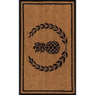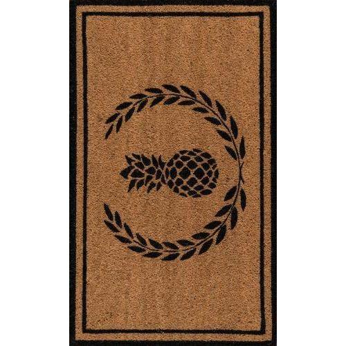 Park Par 1 Black, a stylish indoor/outdoor area rug that brings a touch of elegance to your doorstep. Featuring a variety of captivating designs such as laurel leaf, pineapples, Greek Key borders, diamonds, and decorative stripes, this rug is sure to catch the eye of your guests. Crafted from resilient coir material, it effectively cleans dirt from shoes and dries quickly, making it suitable for all weather conditions.