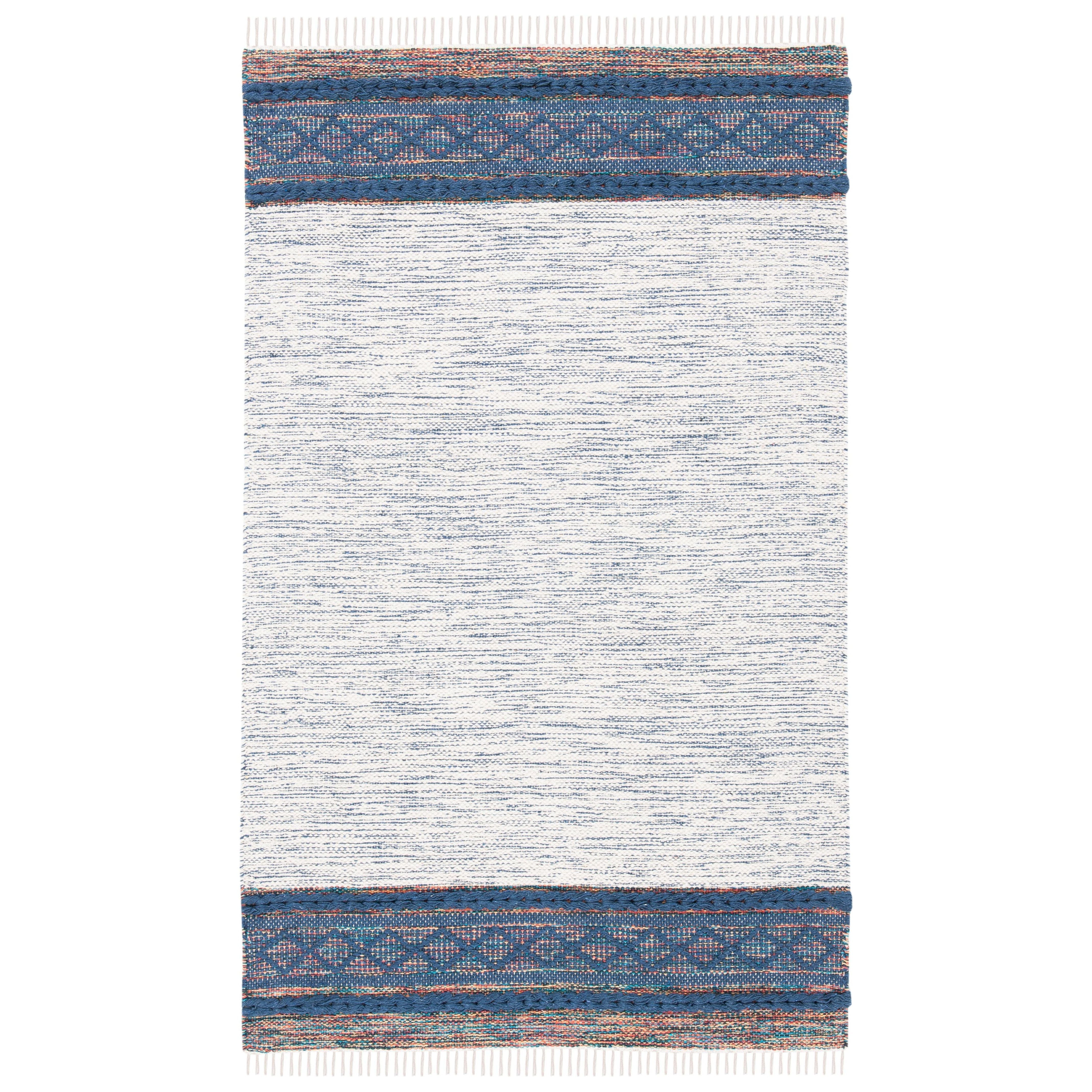 Montauk MTK653N from the Montauk Collection, a stunning representation of casual designer styling perfect for homes ranging from coastal to contemporary. Hand-crafted using cotton, these flat weave rugs boast vibrant colors and classic Ikat tie-dye effects that effortlessly elevate any space. With an approximate thickness of 0.25 inches, this rug adds both style and comfort to your room.