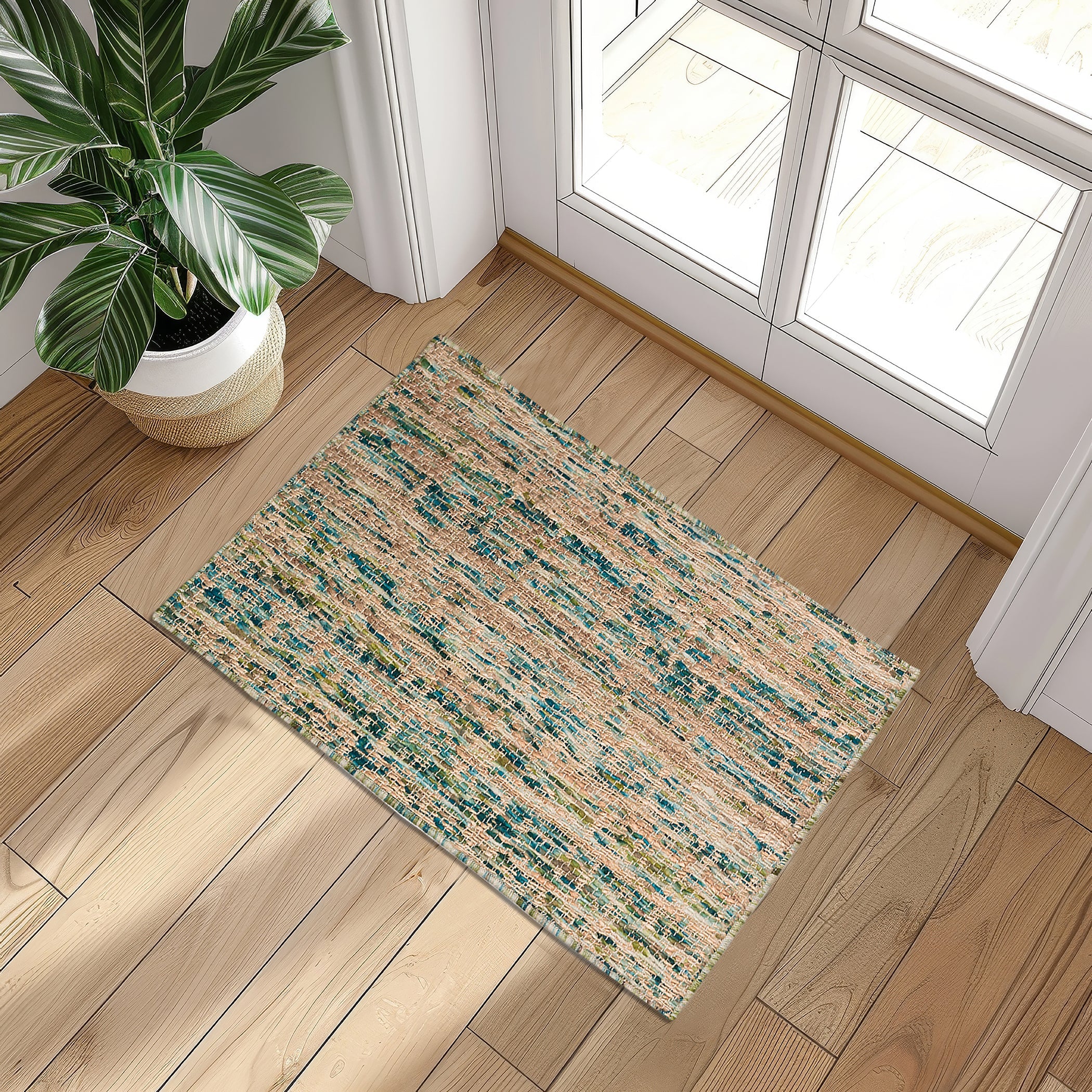 Sahara SA1 Teal, a stunning rug that blends wool and jute to create a unique and elegant pattern that is a treat for the senses. The seamless melding of textures offers a touch of sophistication to any room. This rug features a heavy, flat weave that not only looks appealing but also feels luxurious underfoot.