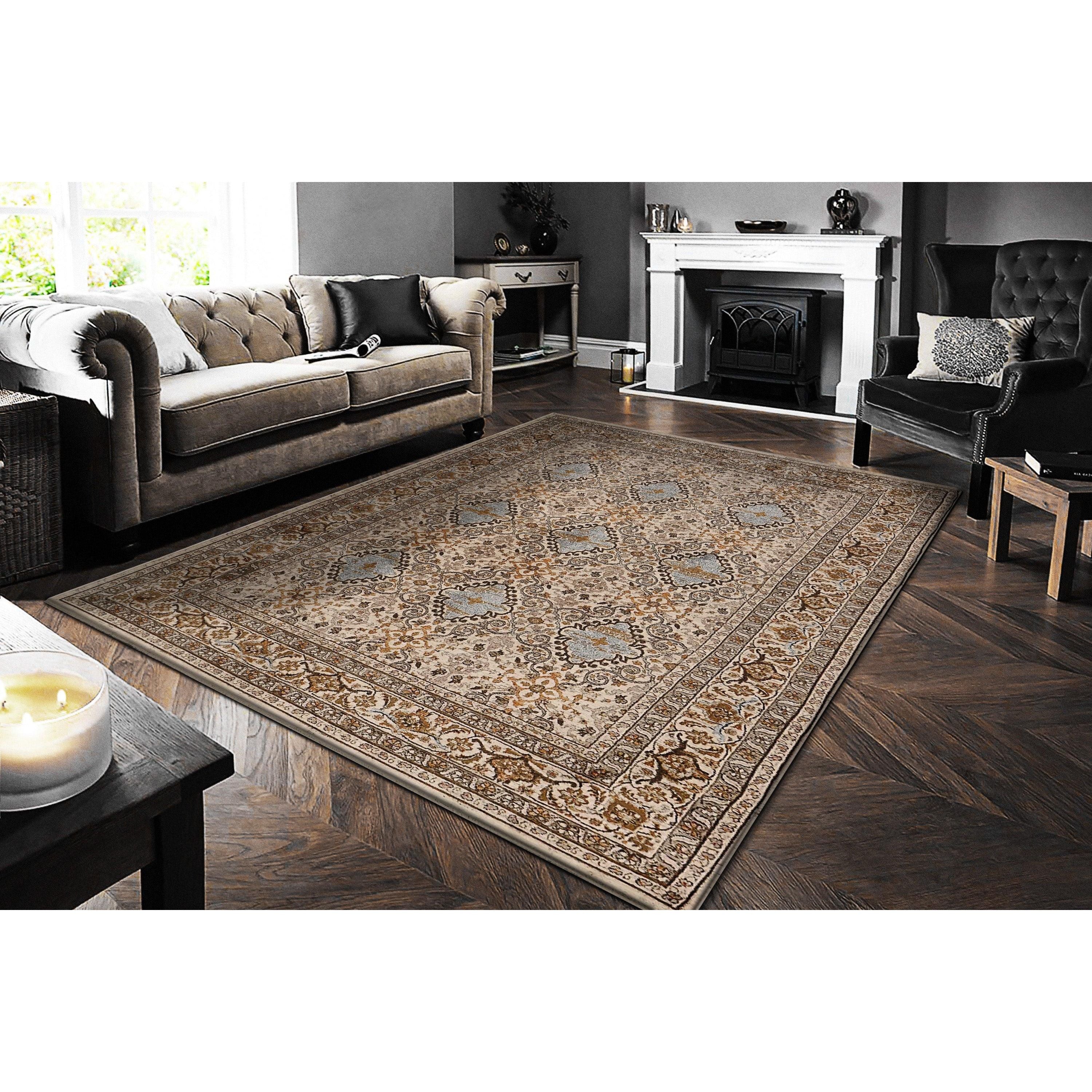 Cullen 5703 Beige Blue rug, a stunning addition to the Cullen collection renowned for its traditional beauty and versatile style. This collection features a harmonious blend of beige, brown, and blue tones that effortlessly complement various interior decor themes. What sets Cullen apart is its unique color-shifting characteristic, creating a distinct appearance under different lighting conditions, ensuring each rug is truly one-of-a-kind.