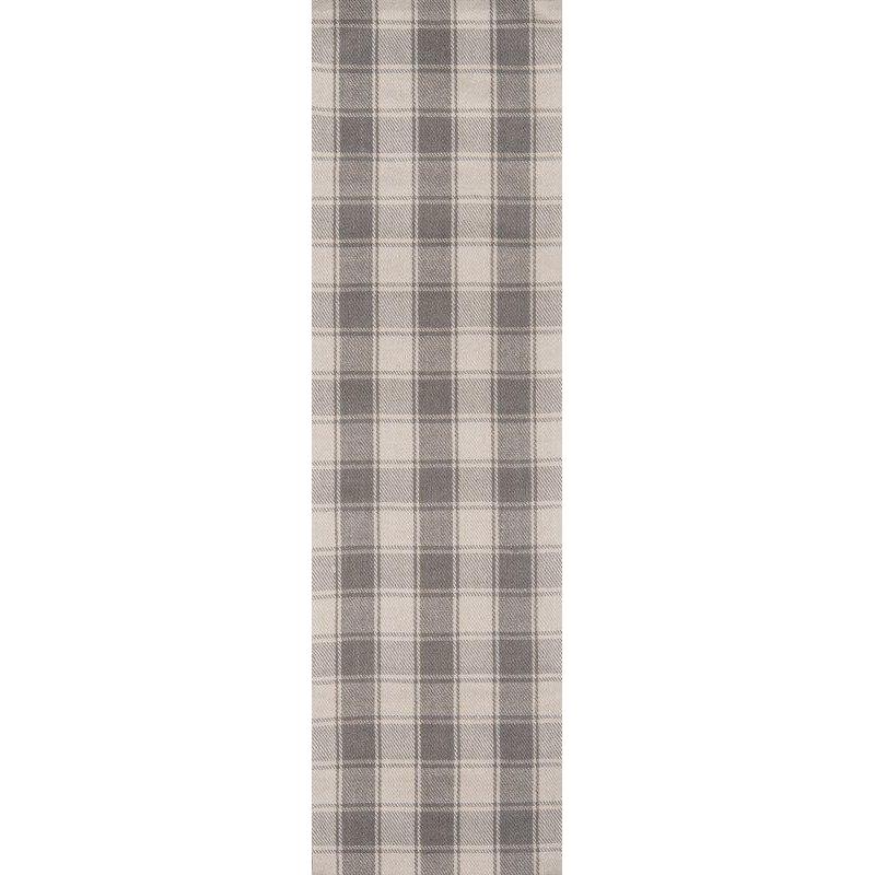 Elevate the style of your living space with the Marlborough Mlb 1 Grey area rug. This versatile piece is perfect for both traditional and modern interiors, making it a must-have for any well-dressed decor. The rug features tailored textile patterns, such as tartan plaid and windowpane check, in elegant shades of blue, gray, and ivory.