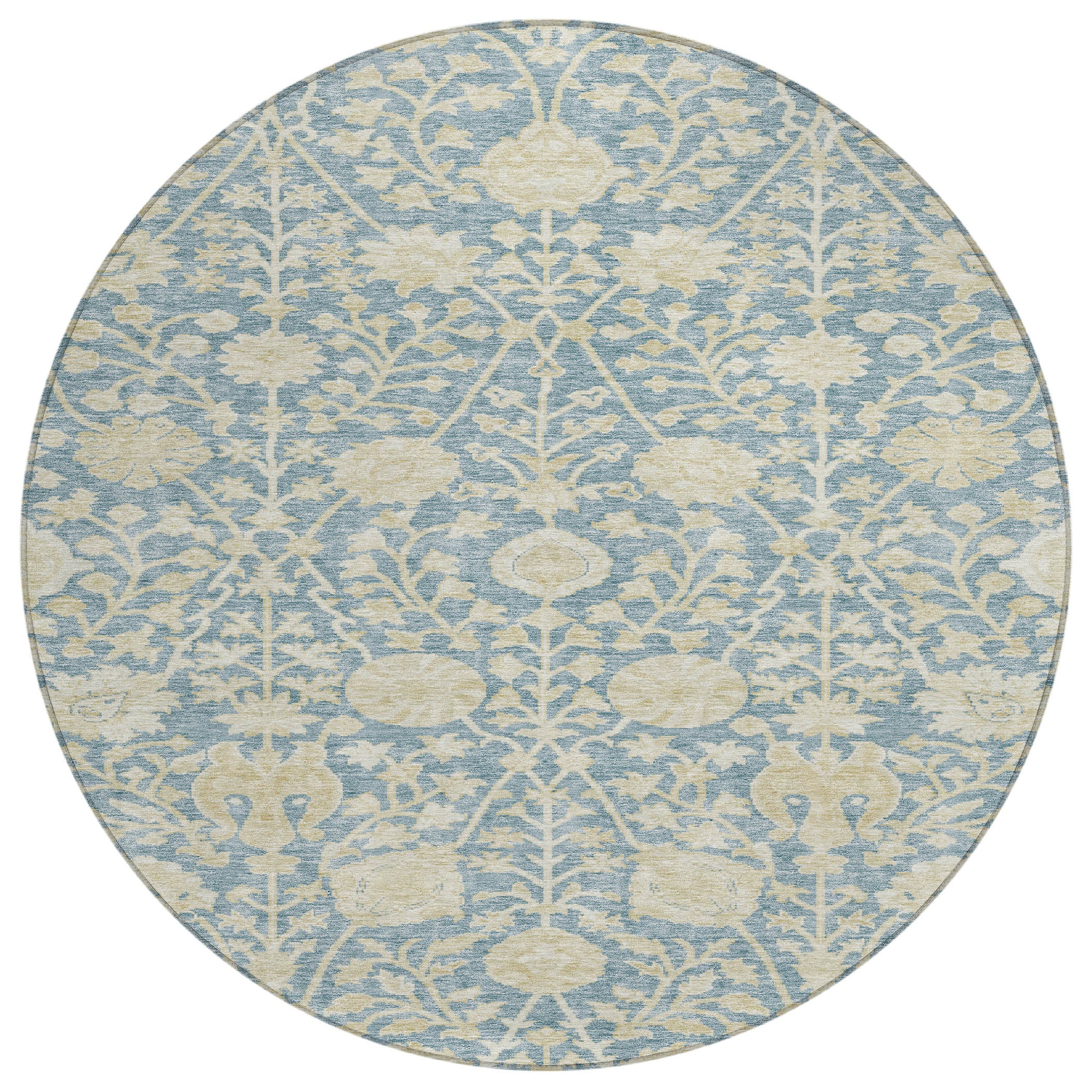Transform your home with our exquisite area rug, adorned with a vine-like pattern and intricate floral details in soothing hues. The transitional design fits beautifully into both traditional and contemporary settings. UV stabilized to resist fading, this rug is perfect for both indoor and outdoor spaces. Its ultra-thin design allows for easy placement in any room, and the machine-washable fabric ensures effortless maintenance, making it a great choice for busy households with pets and kids.