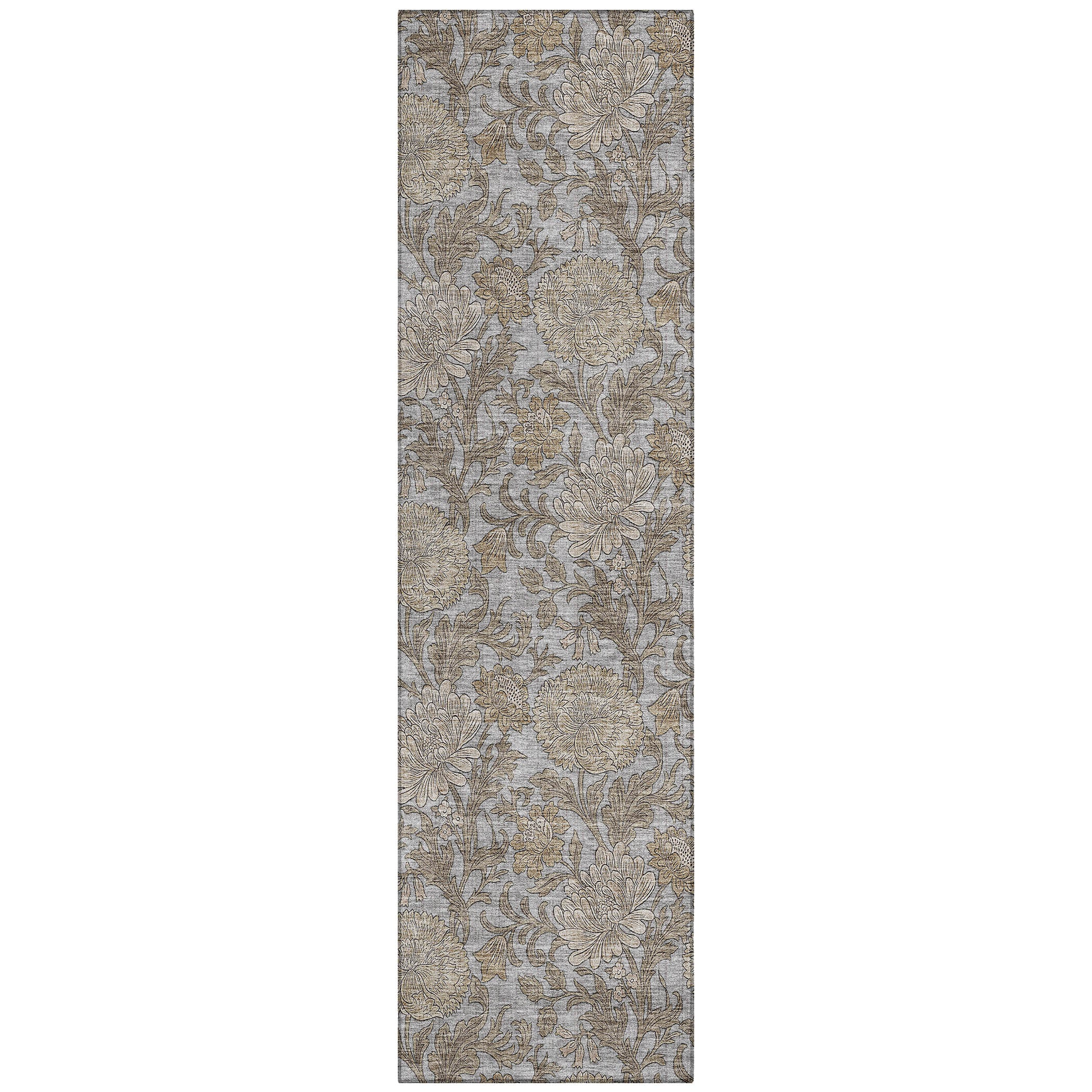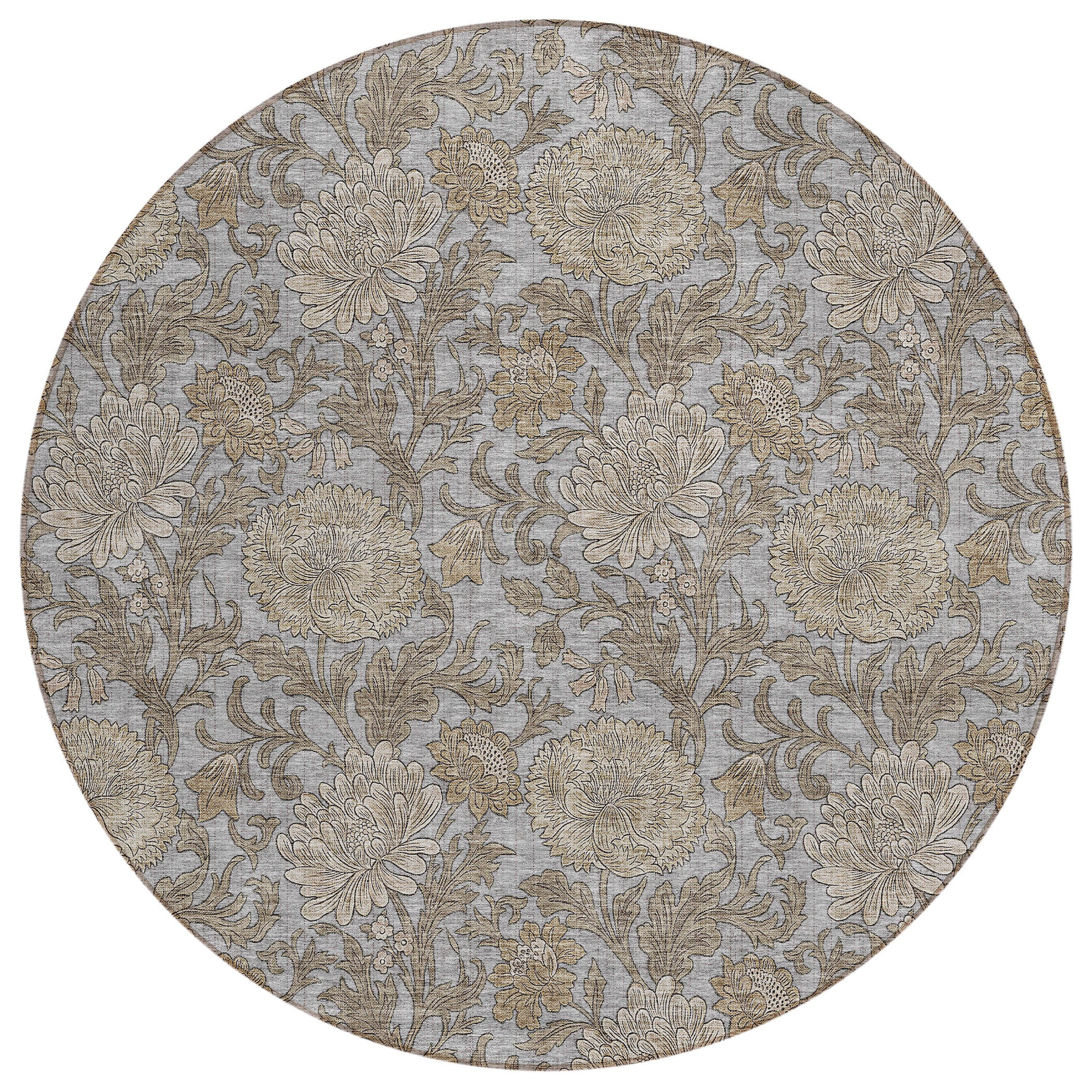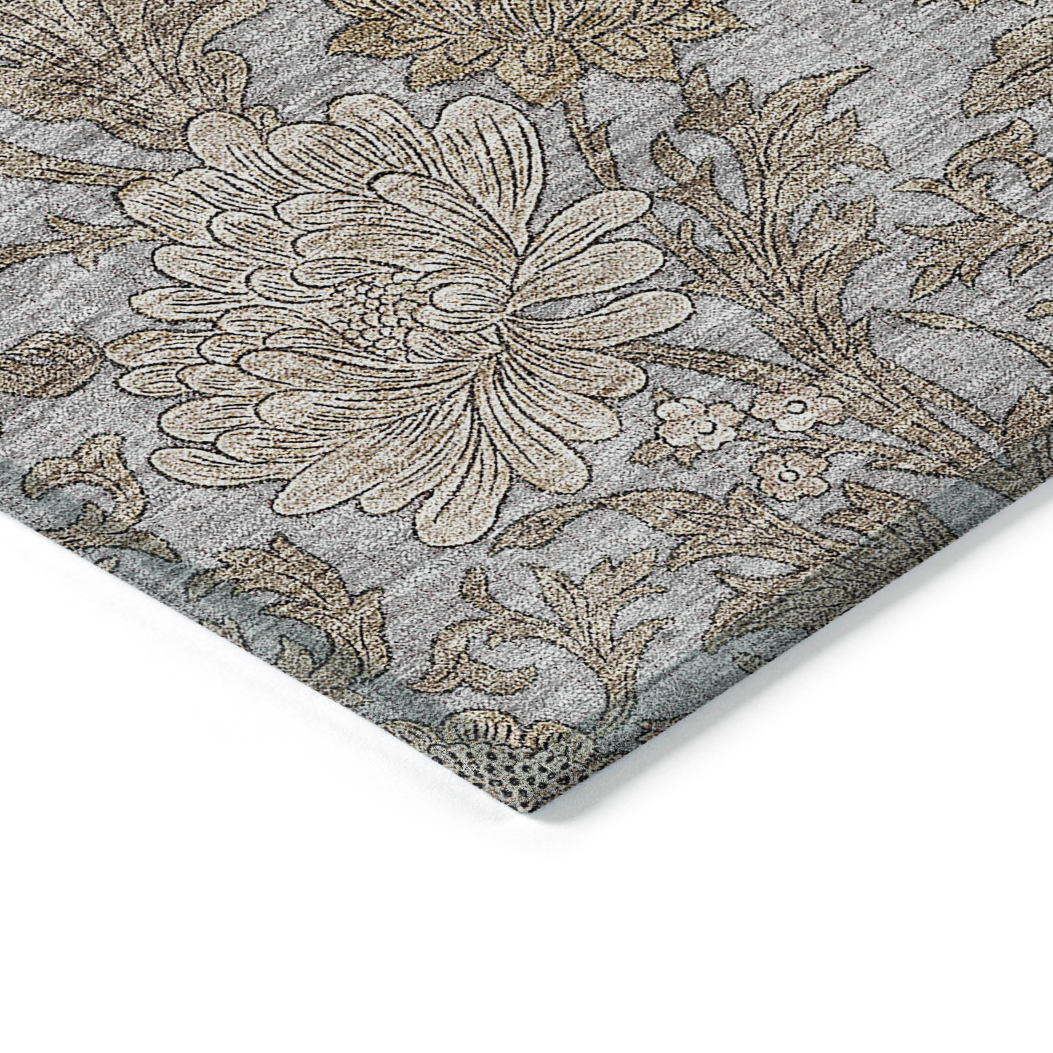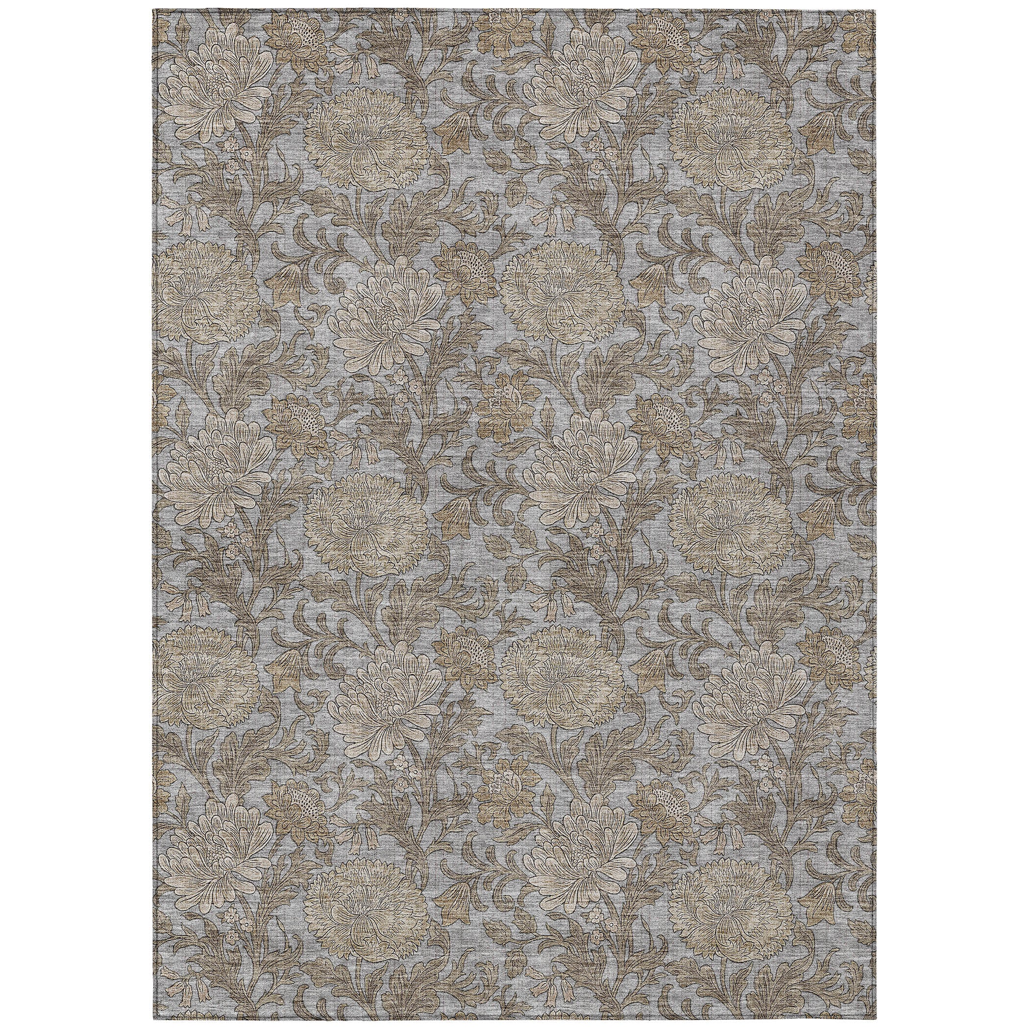Chantille ACN677 Gray area rug, a stunning piece featuring an intricate allover floral pattern intertwined with flowing leaf motifs. This transitional floral design effortlessly elevates any space, whether indoors or outdoors.